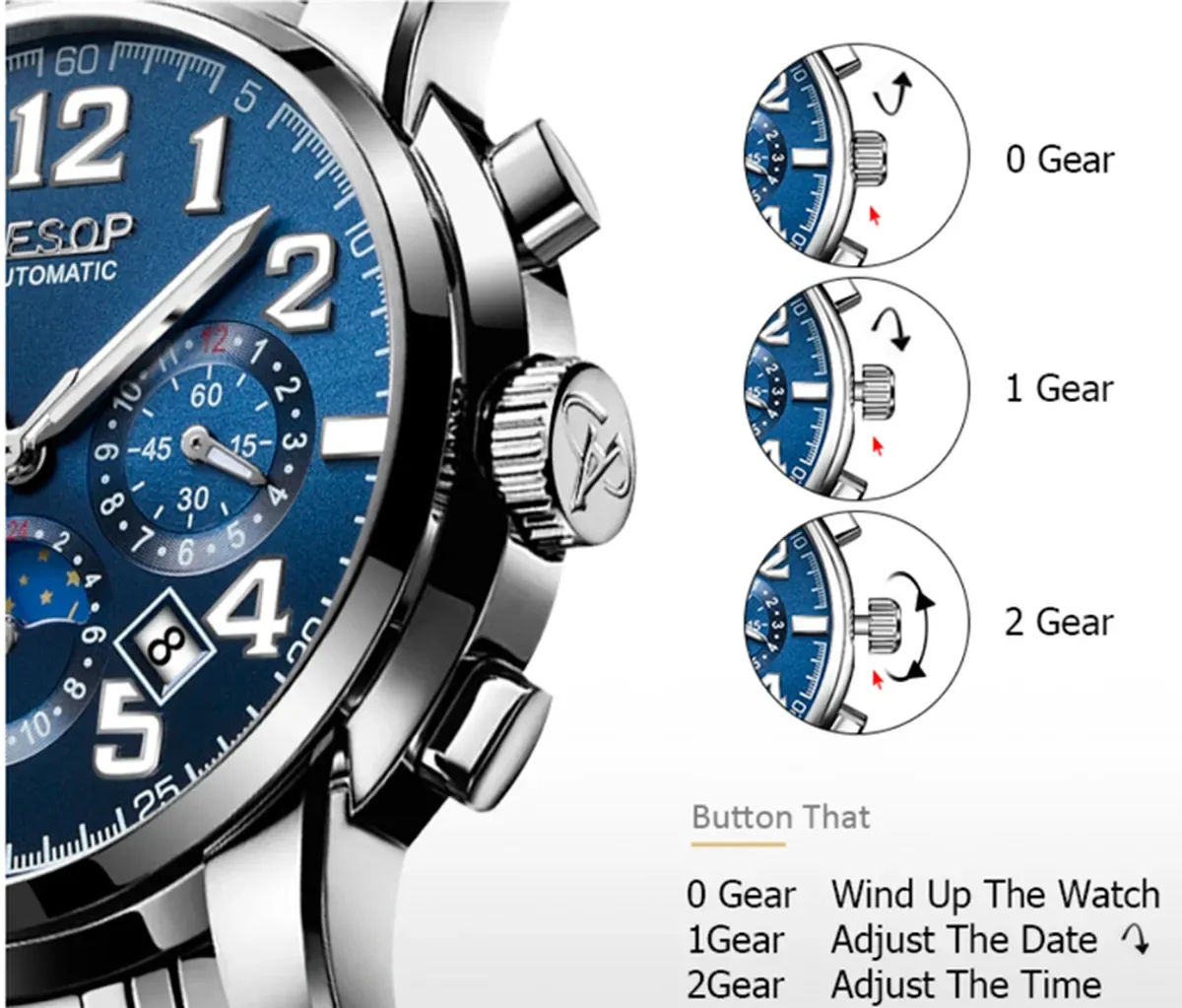 Характеристики механізму:Автоподзавод. 23 камені. Японія