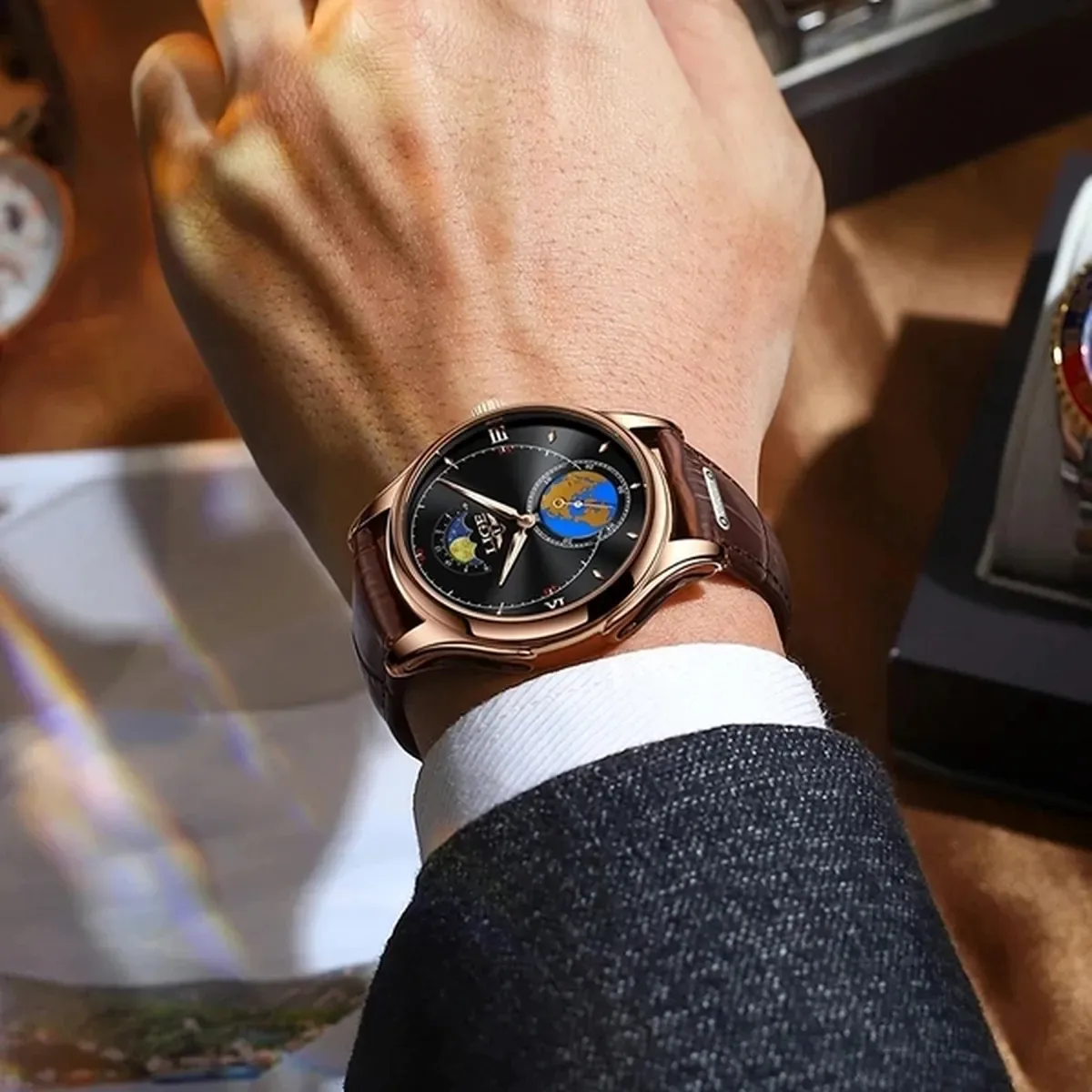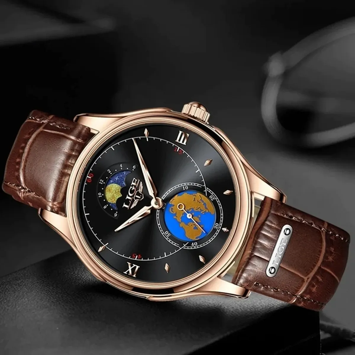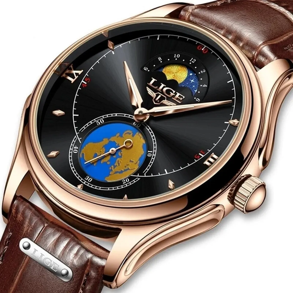 бренд чоловічого наручного годинника стандарту ICO:9001. Годинник має стильний