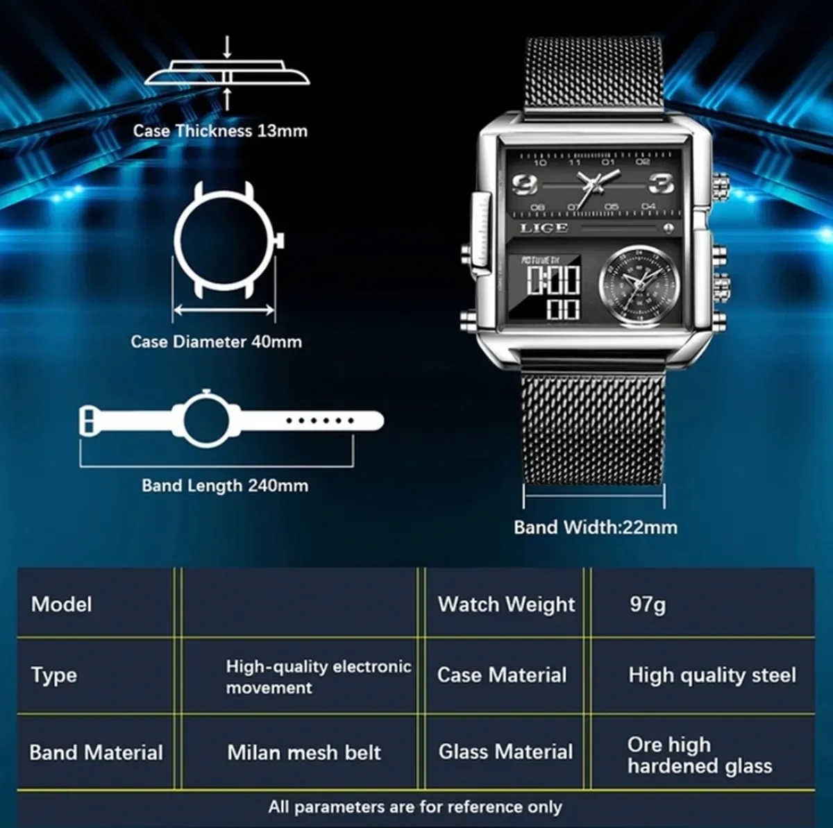 Lige. Годинники мають підвищену ударостійкість, 2 механізму часу і не бояться