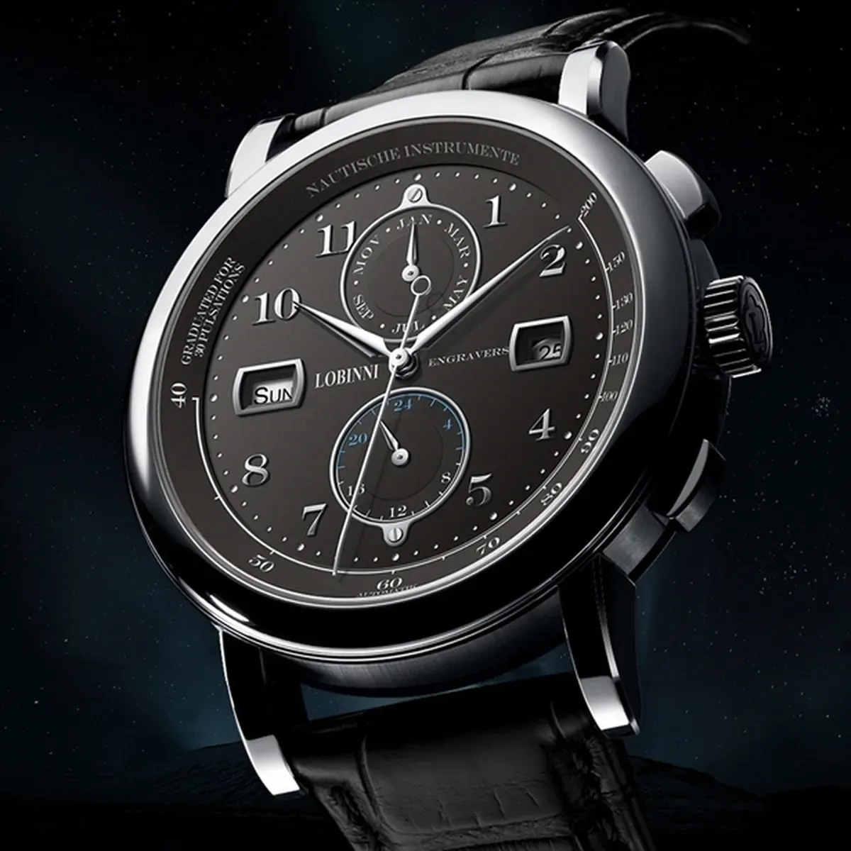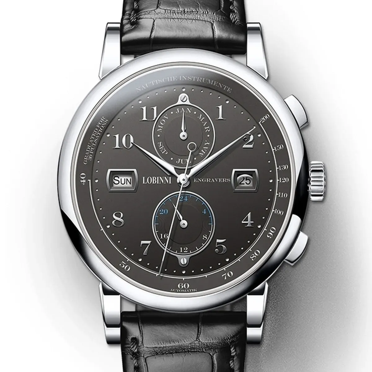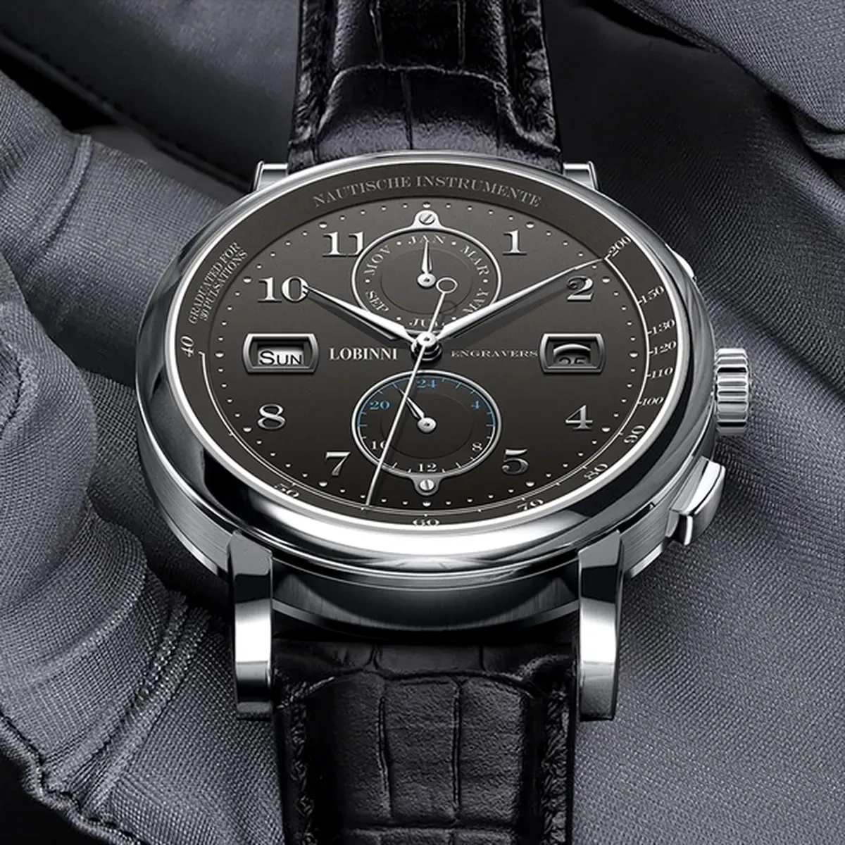 входять в число кращих механізмів світу. Також, всі годинники Lobinni мають сапфірове скло, корпус зі