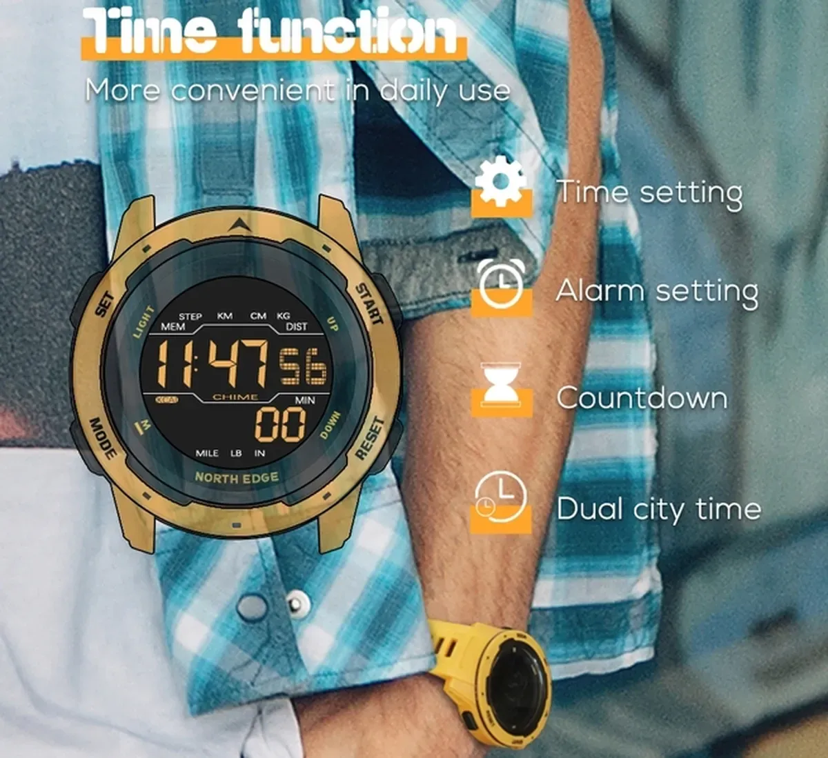 Функції:Водостійкість 5 атм. хардлес скло. фітнес-трекер. калорії. дистанції. секундомір. підсвічування. будильник. таймер.
