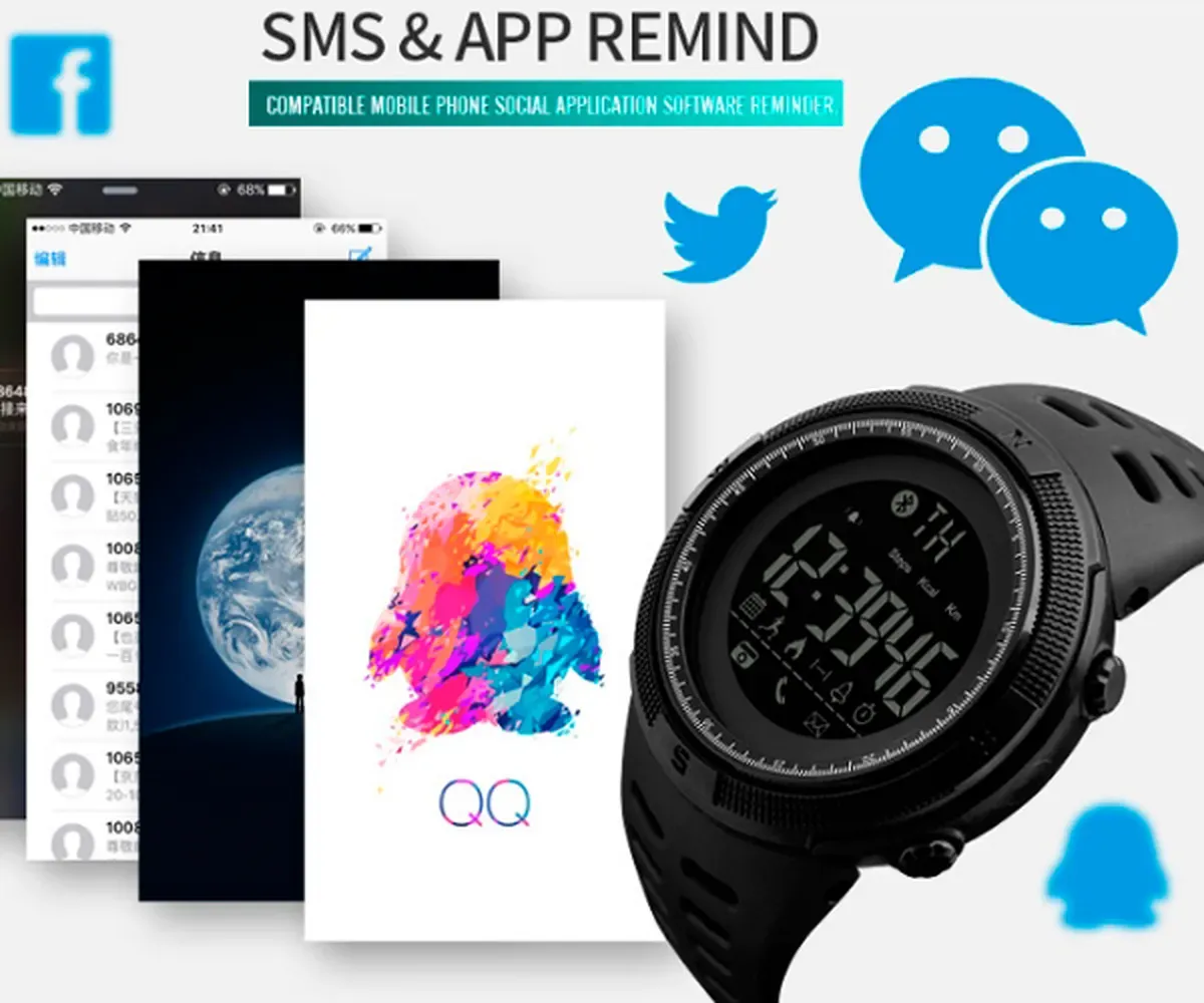 Функції:Оповіщення про пропущені дзвінки на телефоні. оповіщення з додатків. управління камерою телефону. фітнес - трекер. педометр. секундомір. будильник. підсвічування. дата. день тижня. місяць