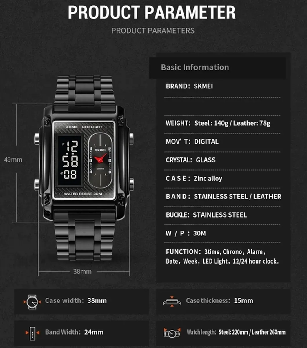 Тип циферблата:Комбінований (аналогово-стрілочний)