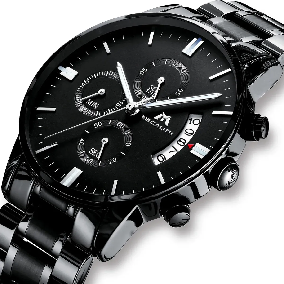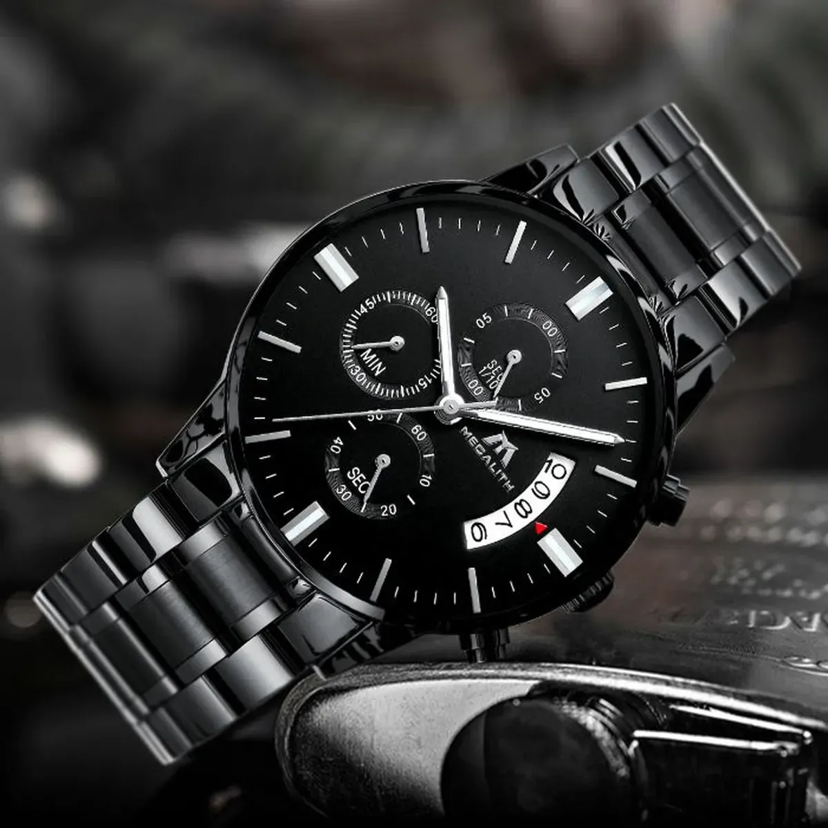 MegaLith - бренд чоловічих годинників, ексклюзивно представлений в магазині Бест-Тайм. Годинники комплектуються оригінальним японським кварцовим механізмом, якісним мінеральним склом, корпус виготовляється з особливого сплаву металів. Процес складання зосереджений на одному заводі, що відповідає вимогам міжнародного стандарту якості ICO: 9001.