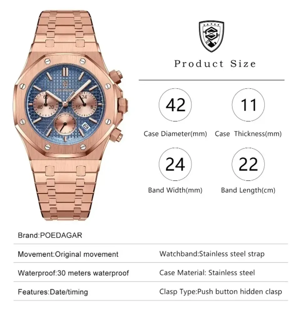 Poedagar - це ідеальний вибір для ділових зустрічей, повсякденного стилю або особливих подій. Це не просто годинник - це вираз вашого смаку, впевненості та стилю.