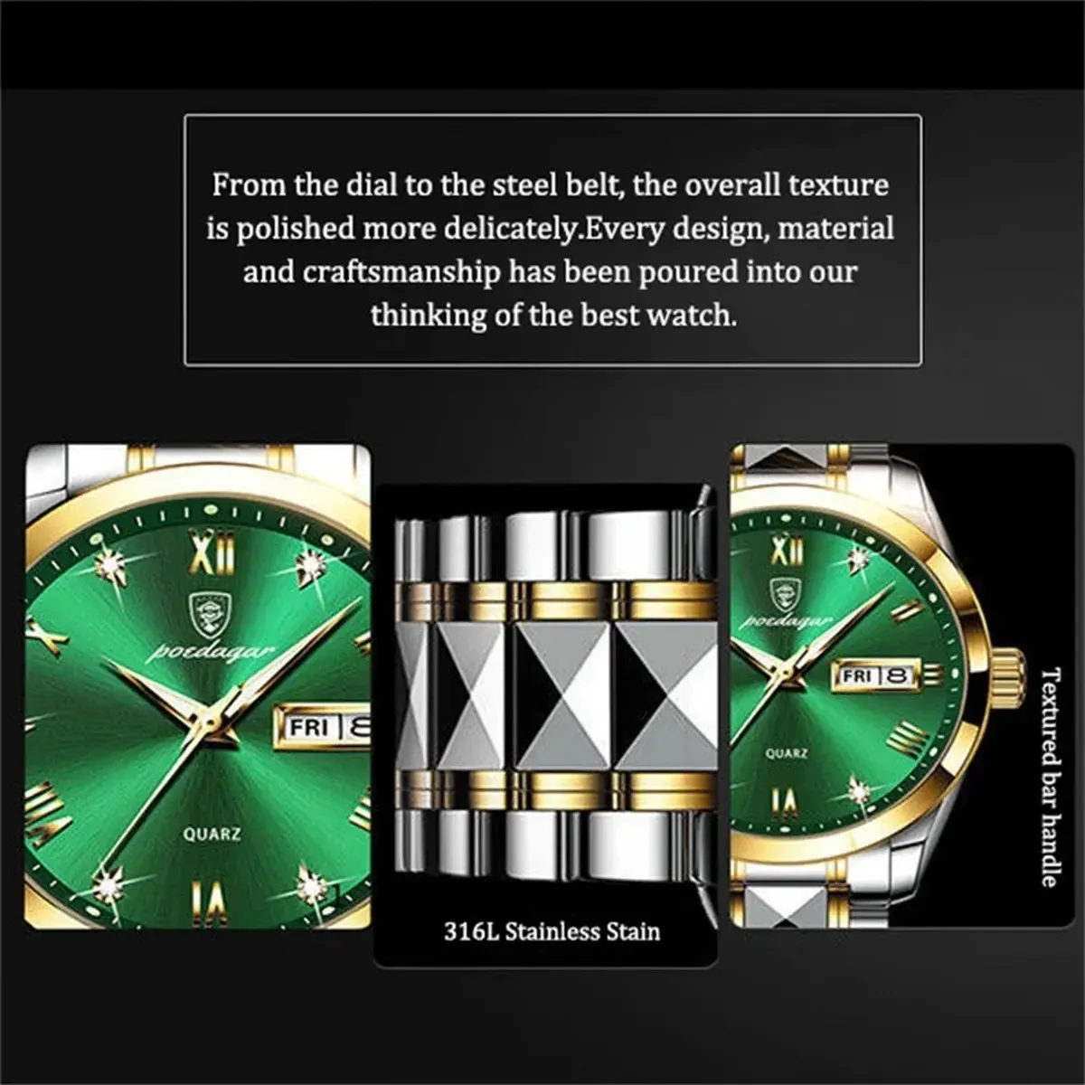 Poedagar - молодий бренд класичних годинників. В Україні представлений ексклюзивно вперше. Перевагою бренду Poedagar є висока якість комплектуючих, надійність механізму, а також цілком доступна вартість.