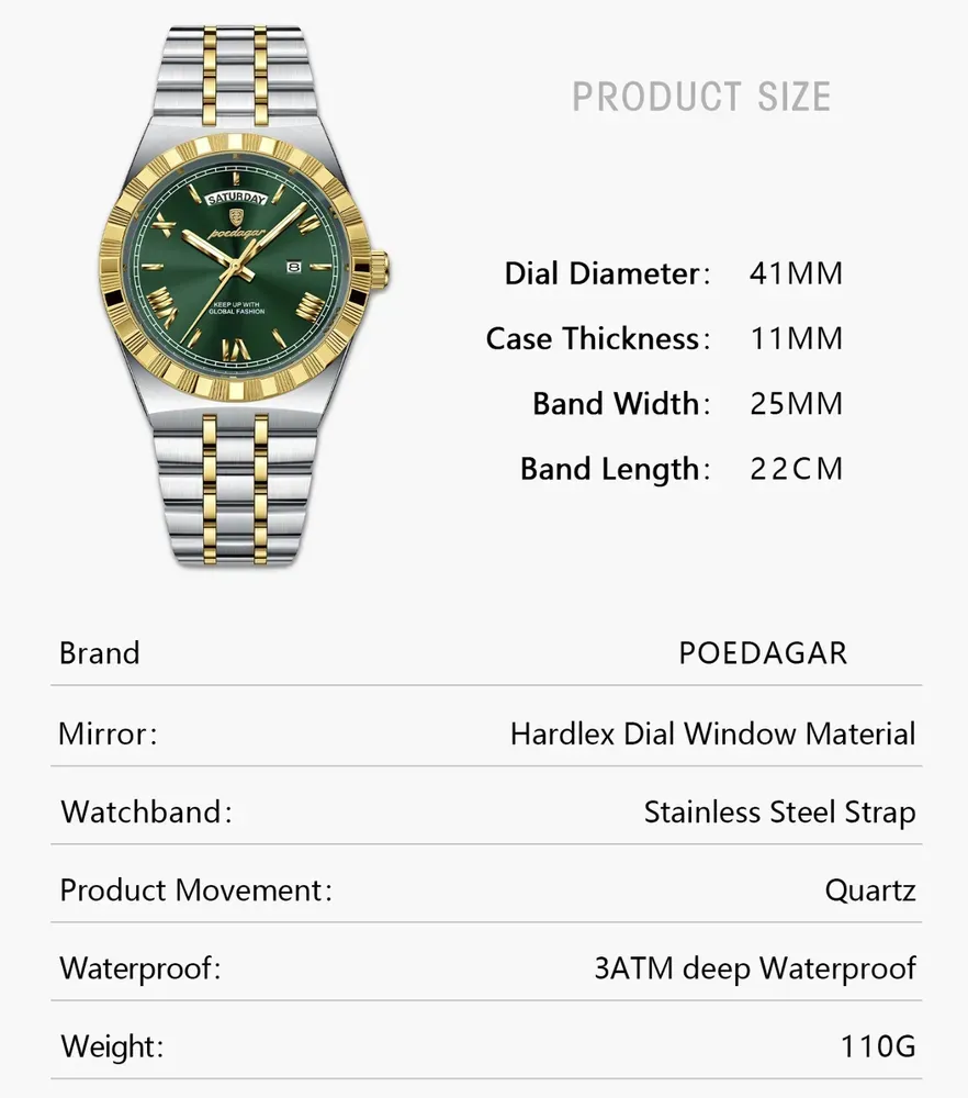 Poedagar - це ідеальний вибір для ділових зустрічей, повсякденного стилю або особливих подій. Це не просто годинник - це вираз вашого смаку, впевненості та стилю.