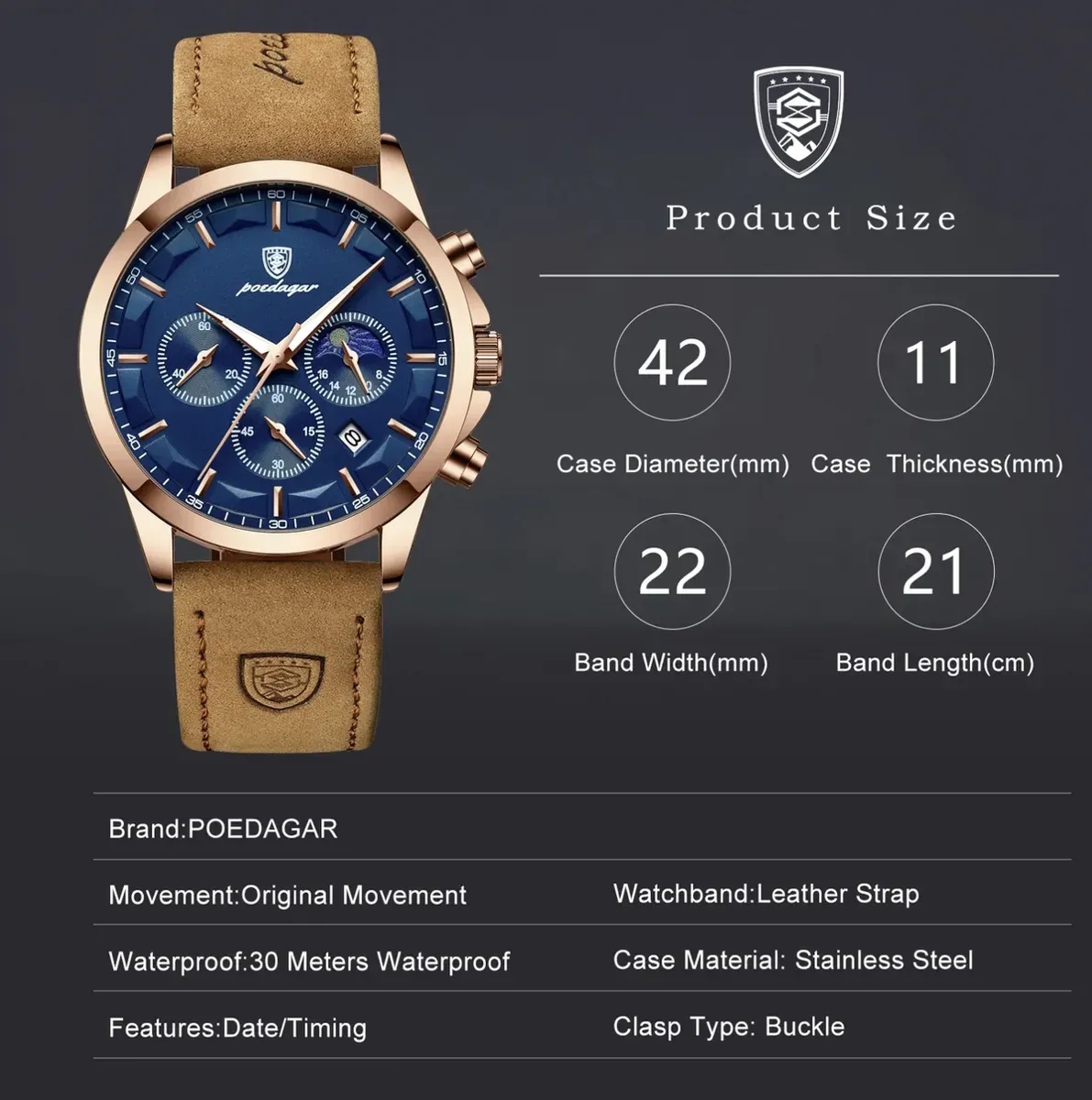 Poedagar - молодий бренд класичних годинників. В Україні представлений ексклюзивно вперше. Перевагою бренду Poedagar є висока якість комплектуючих, надійність механізму, а також цілком доступна вартість.