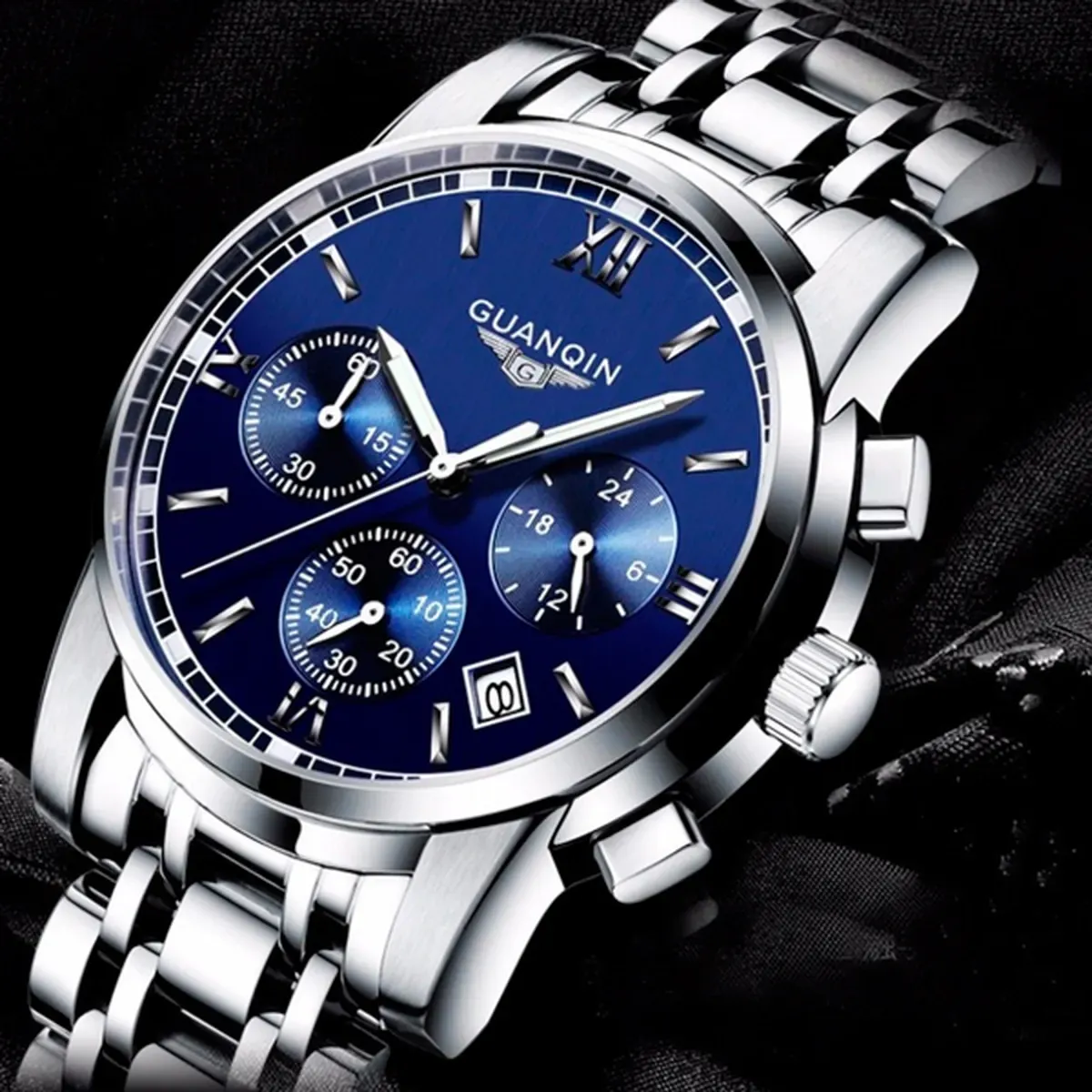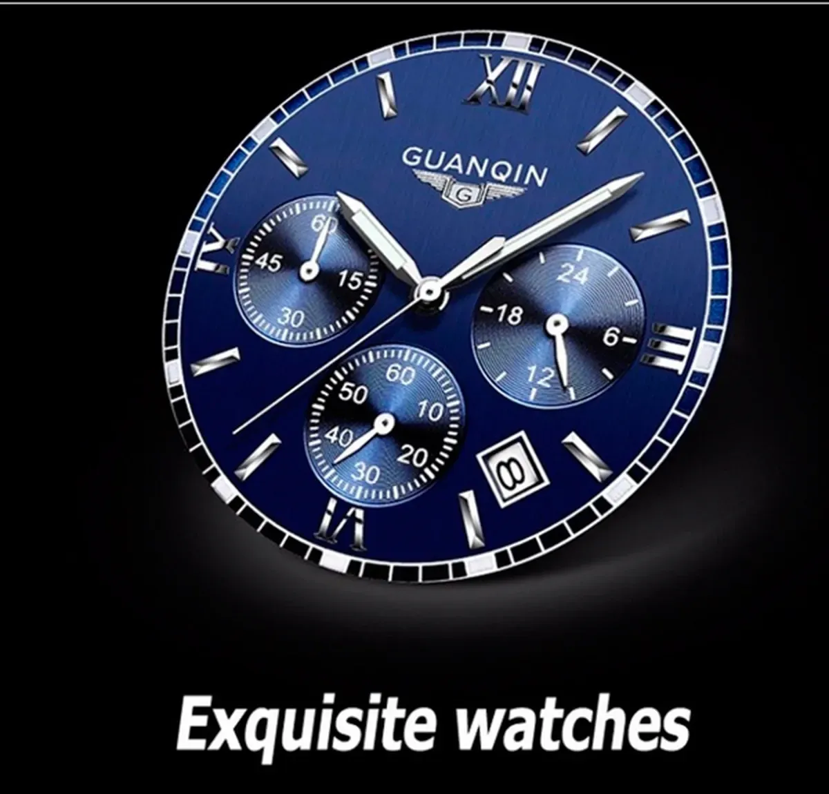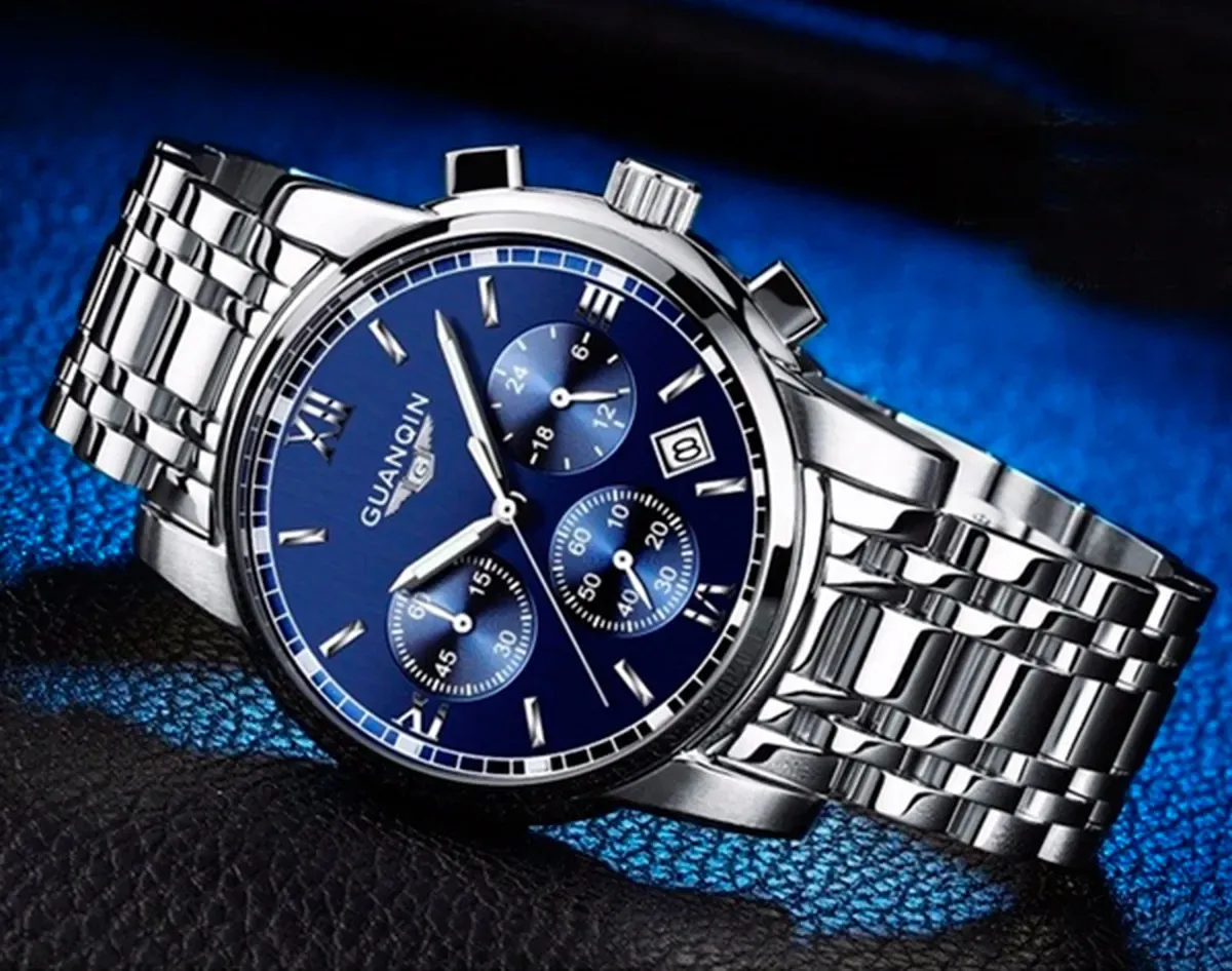 Чоловічий класичний кварцовий годинник Guanquin Liberty Blue 8802