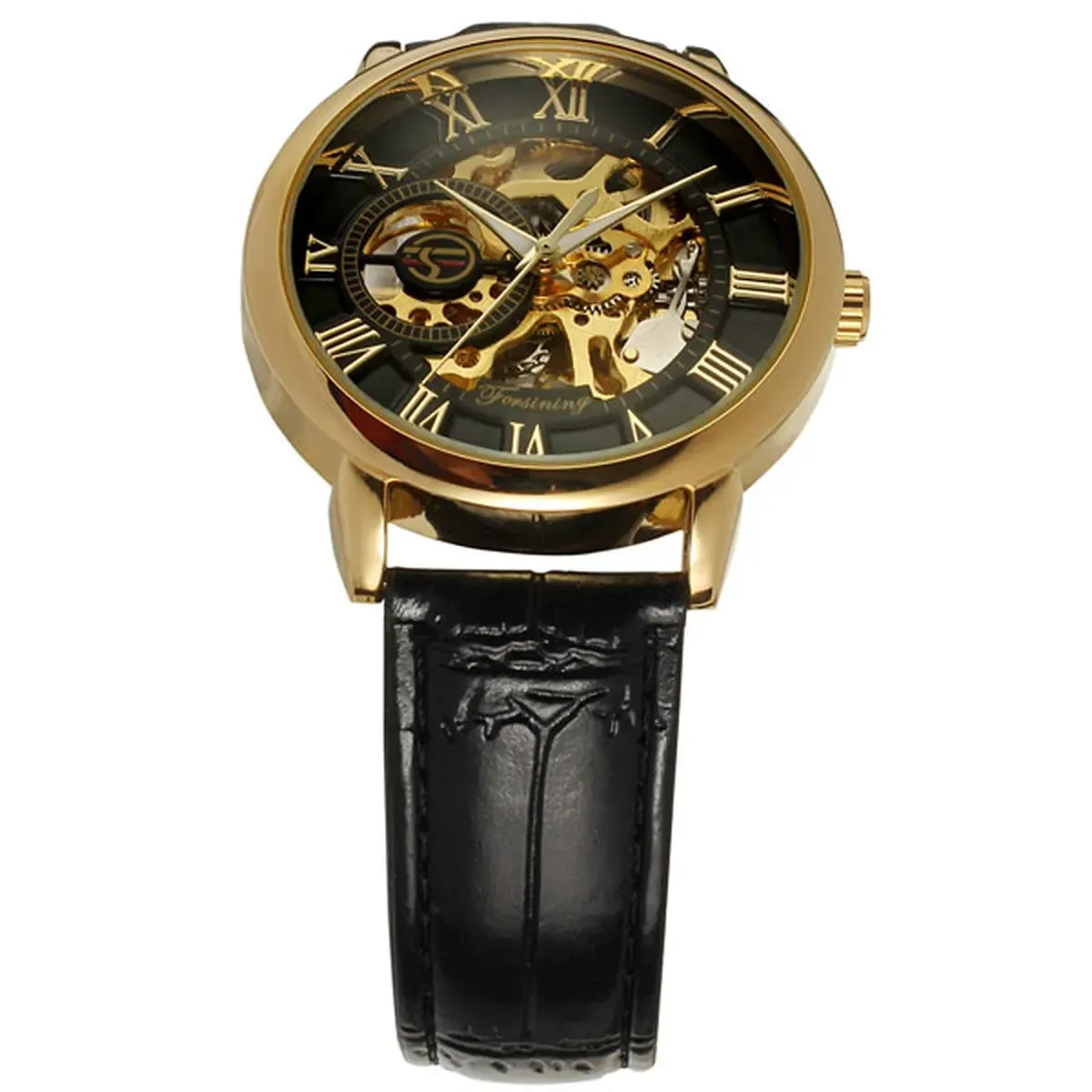 Чоловічий класичний механічний годинник Forsining Rich Black 1120