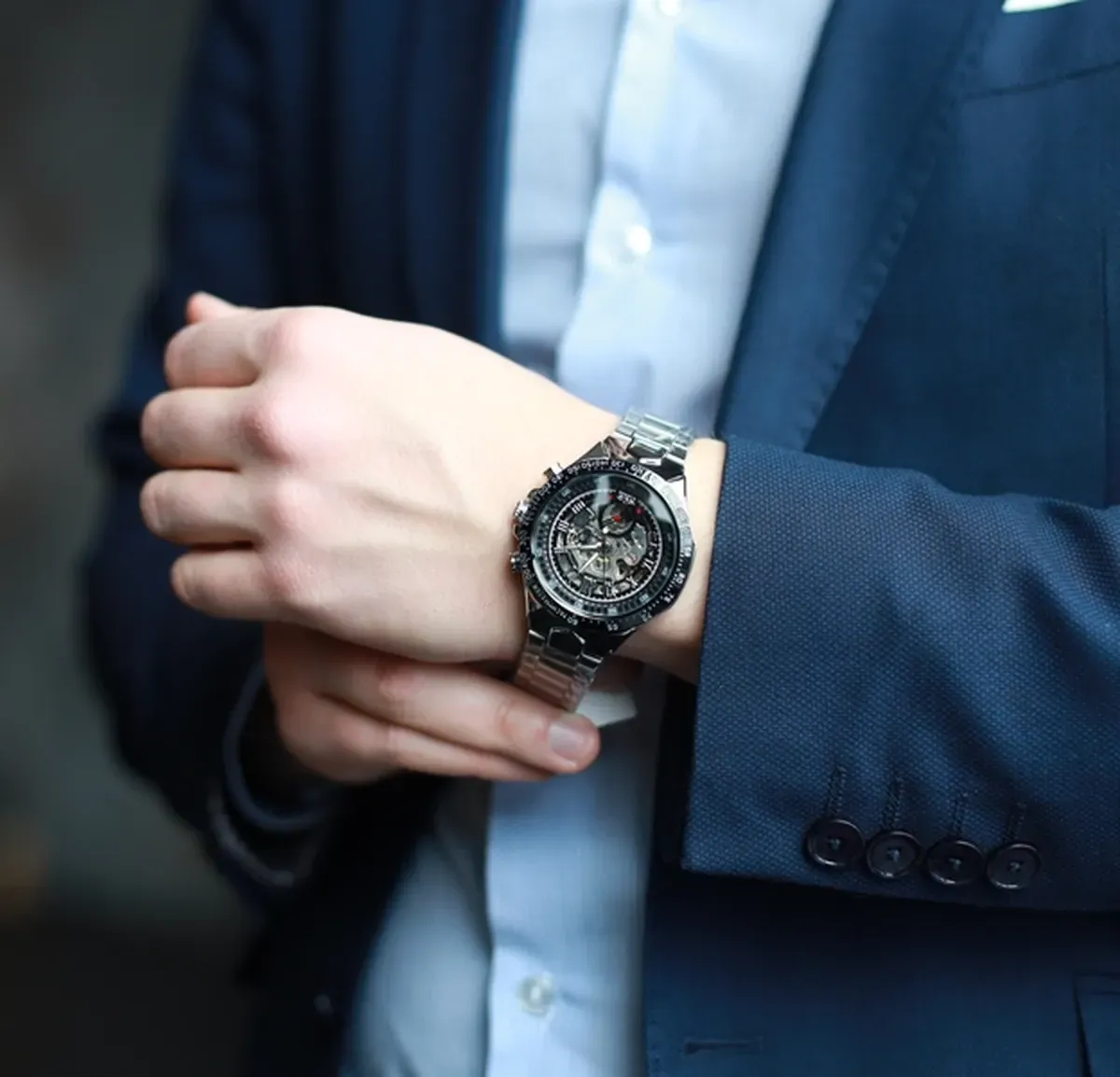 Чоловічий класичний механічний годинник Winner Action Silver 1535