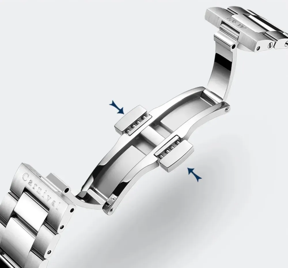CARNIVAL BlueMarine 10 Bar - новий водостійкий годинник від бренду Carnival. Дана модель виконана повністю із надміцної сталі, витримує до 10 метрів під водою та має новий унікальний японський механізм Seiko з 24-ма каменями. Модель комплектується сапфіровим склом та зібрала у собі всі найкращі новітні розробки заводу Carnival.