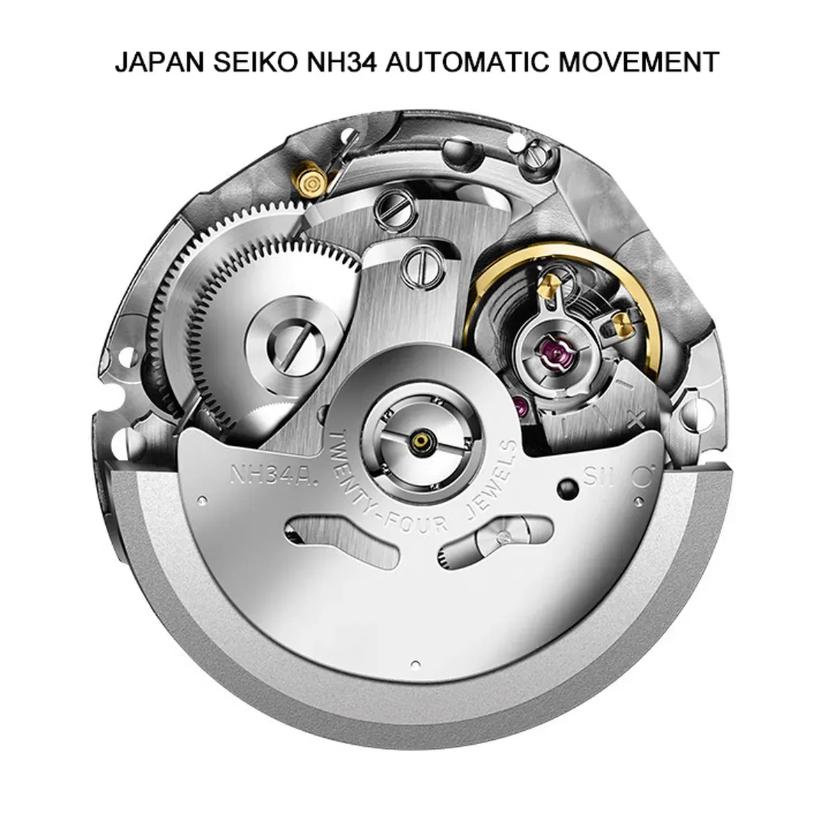 Характеристики механізму:Автозавод, Seiko NH34, 25 каменів, Японія