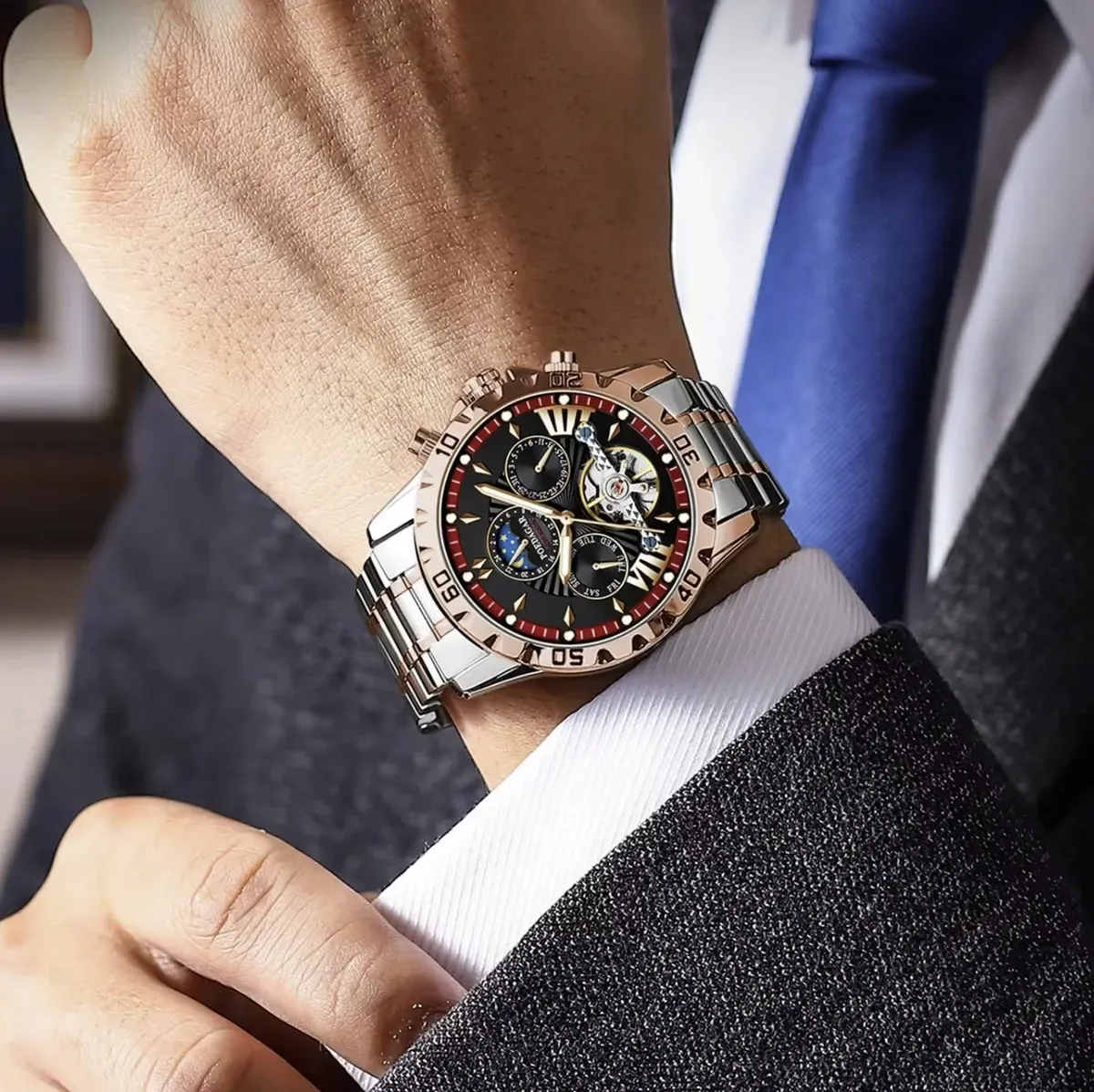Функції:Показують дату, день тижня, місяць, маятник «Турбілліон», система "День-Ніч".