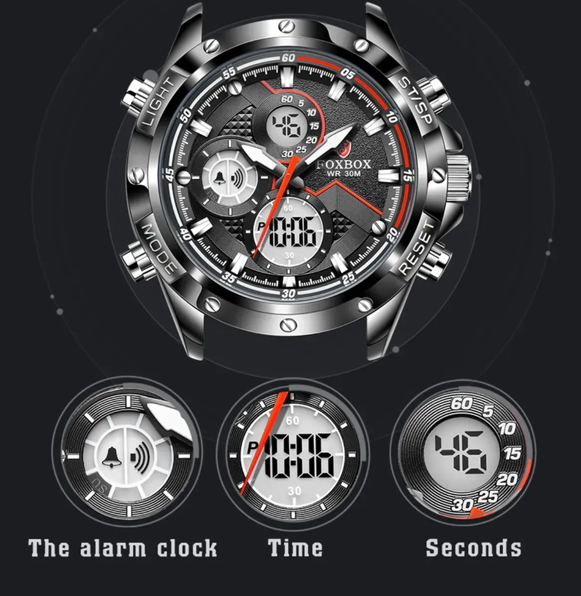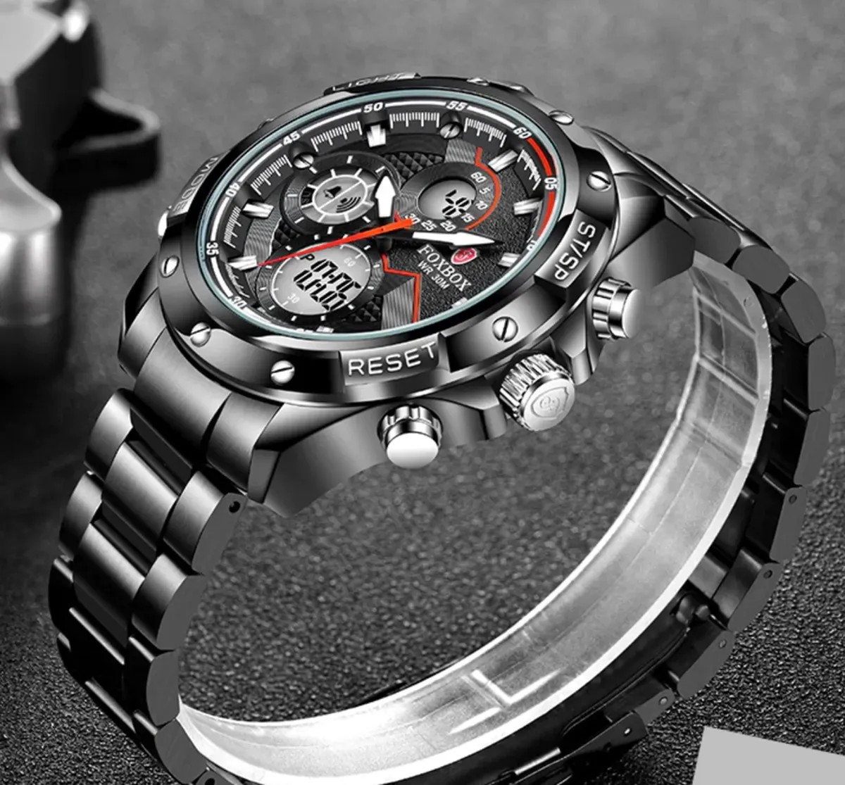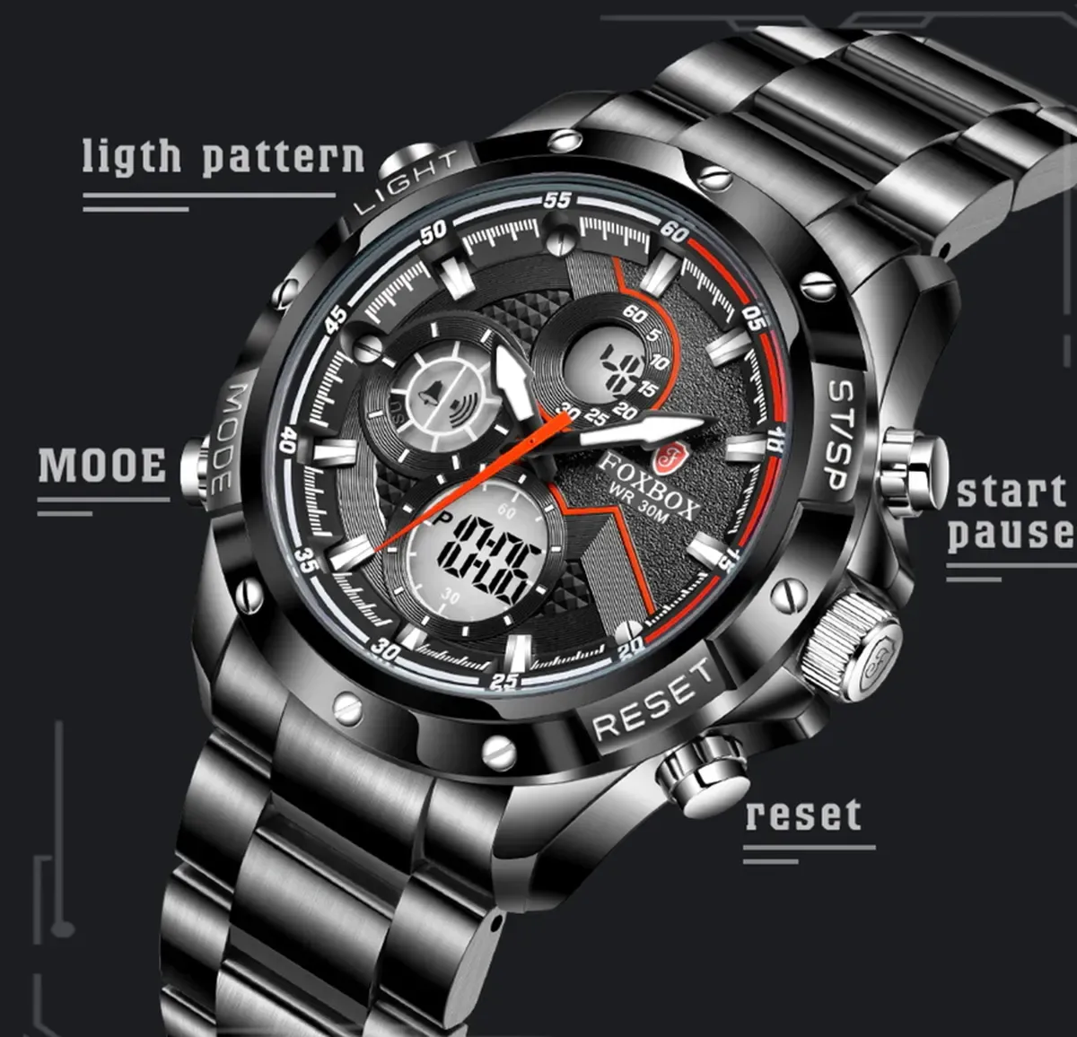 Foxbox – преміальна тактична спортивна серія заводу Lige. Годинник має підвищену ударостійкість, не боїться води й підійде під будь-який стиль. Всі годинники Lige мають стандарт якості ICO:9001. Також годинник комплектується японським механізмом і має офіційну гарантію 12 місяців.