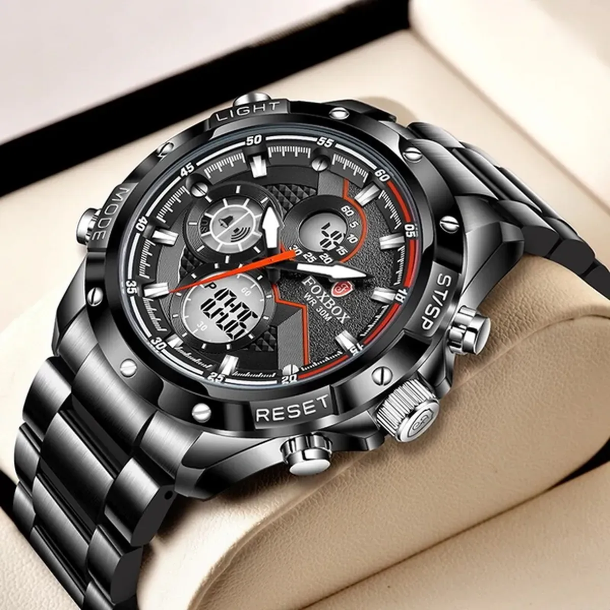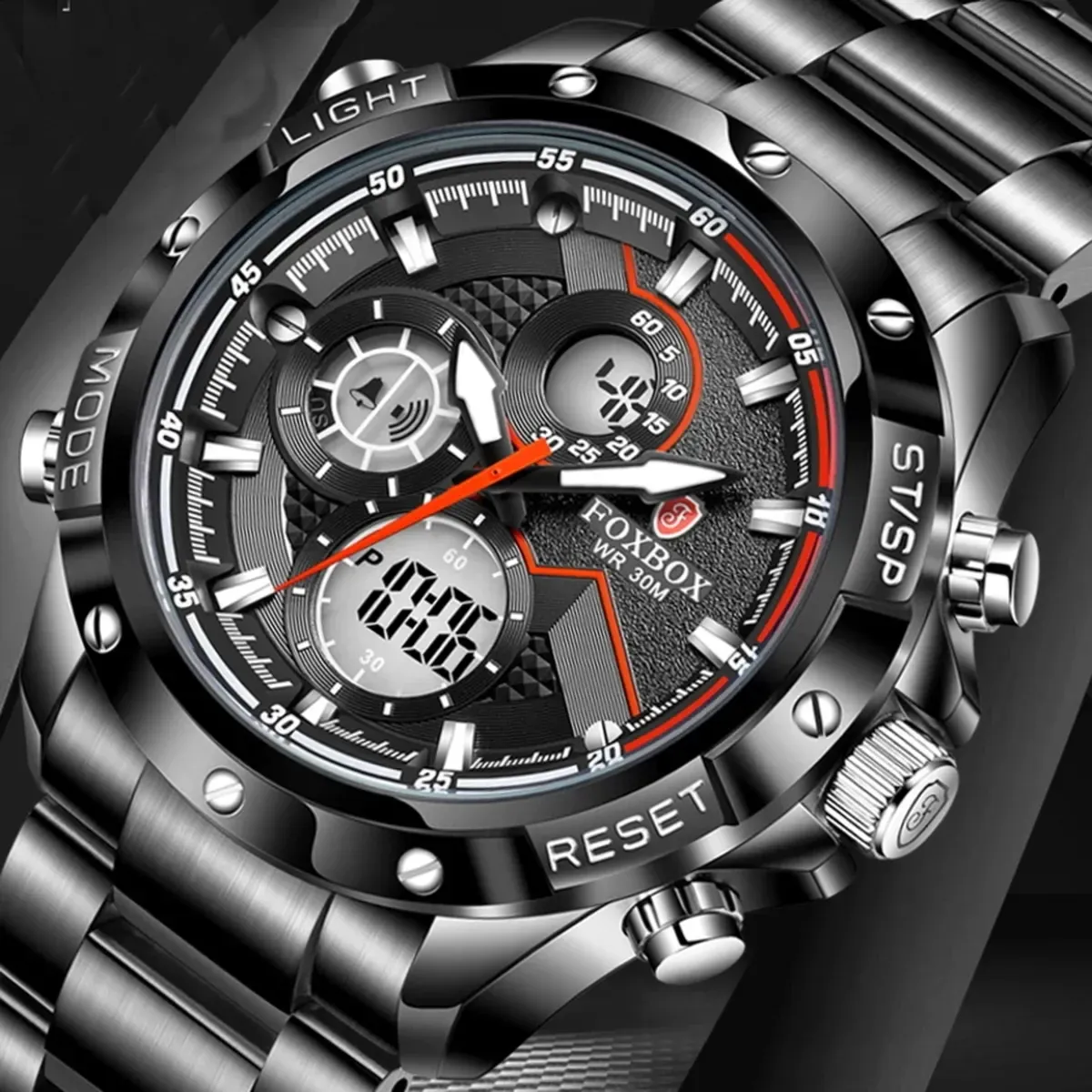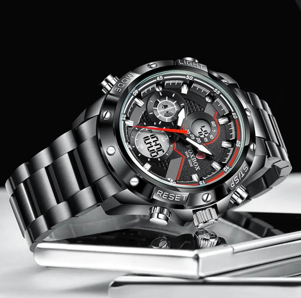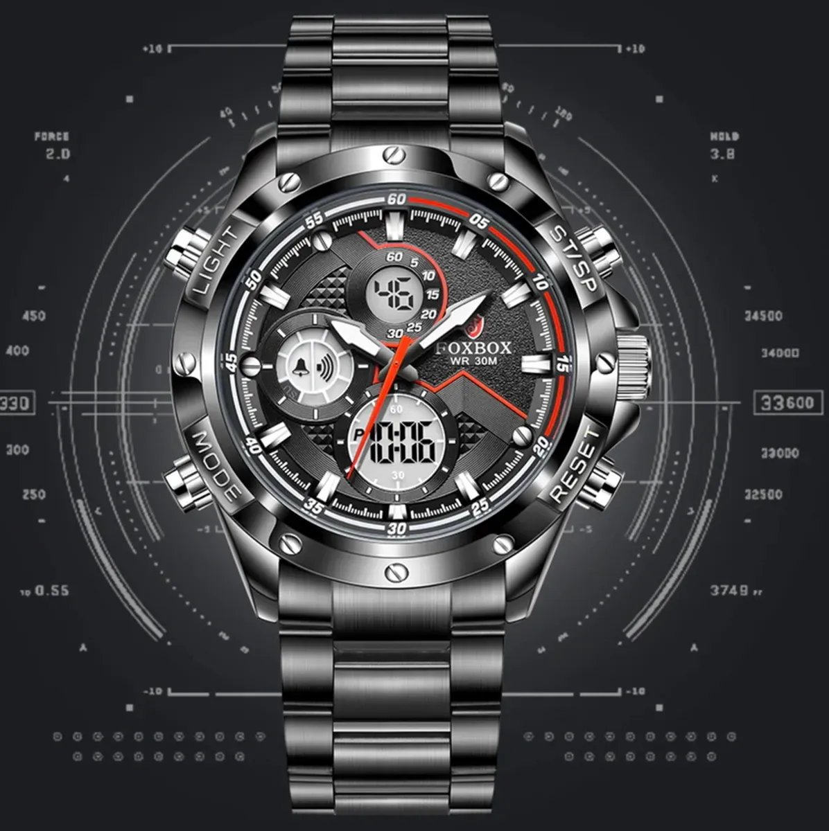 Foxbox – преміальна тактична спортивна серія заводу Lige. Годинник має підвищену ударостійкість, не боїться води й підійде під будь-який стиль. Всі годинники Lige мають стандарт якості ICO:9001. Також годинник комплектується японським механізмом і має офіційну гарантію 12 місяців.