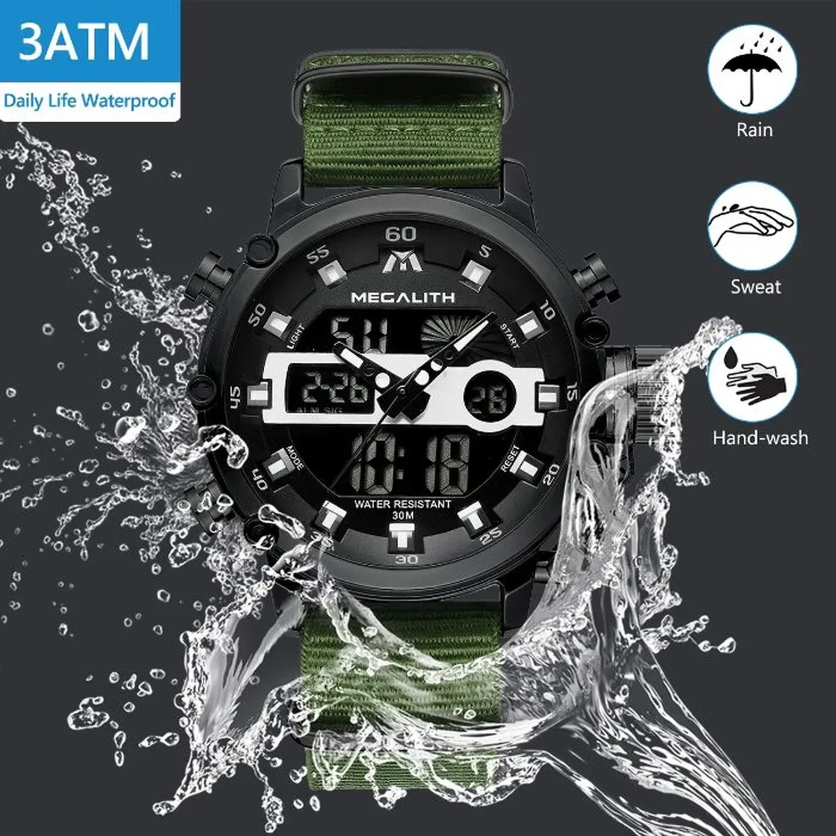 Чоловічий спортивний тактичний годинник MegaLith Prof Green