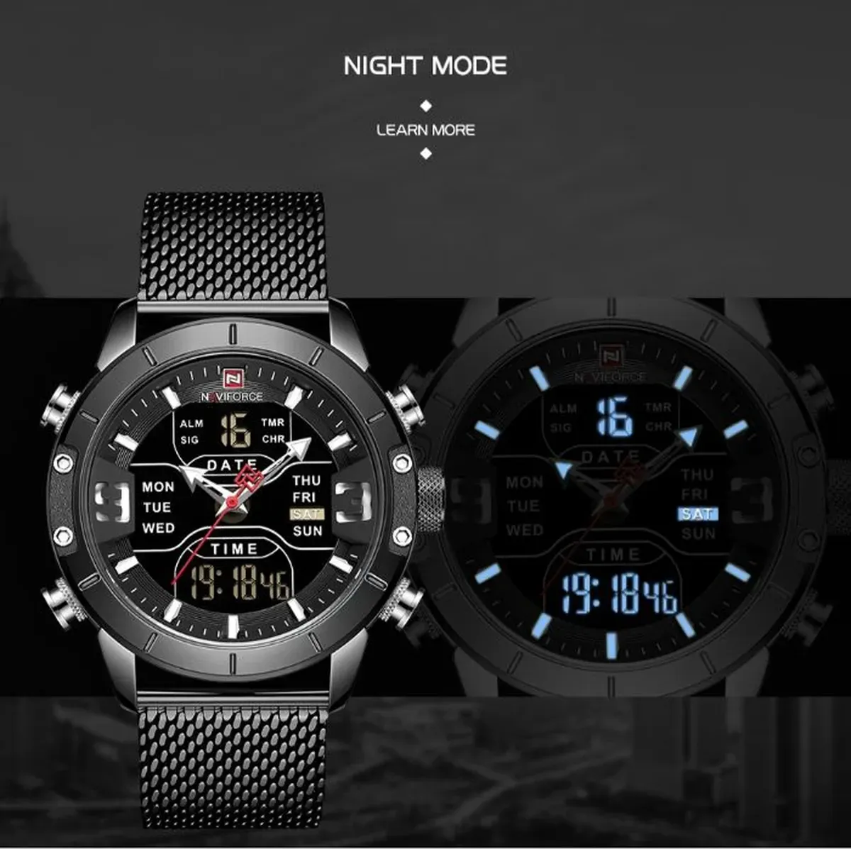 Мужские спортивные тактические часы Naviforce Tesla Black NF9153
