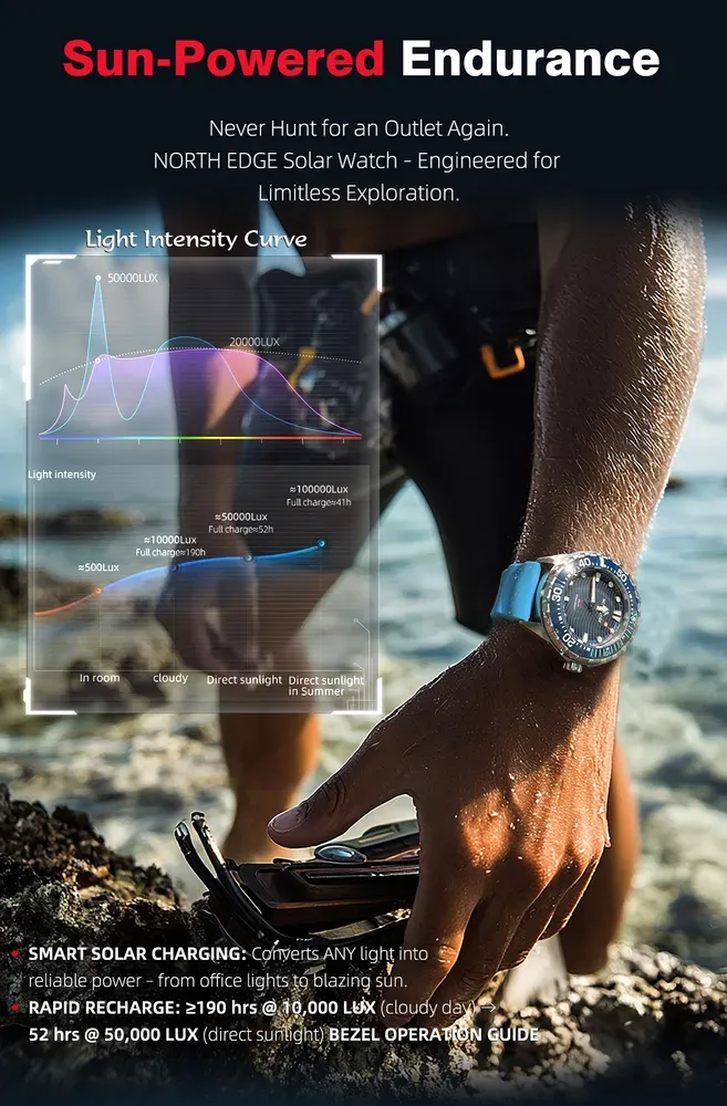 North Edge - це бренд тактичних годинників, які спеціально розроблені для військових, пілотів, моряків і т.д., які працюють в надскладних умовах. Ці годинники призначені для використання в екстремальних ситуаціях, де точність, надійність та функціональність є критичними.