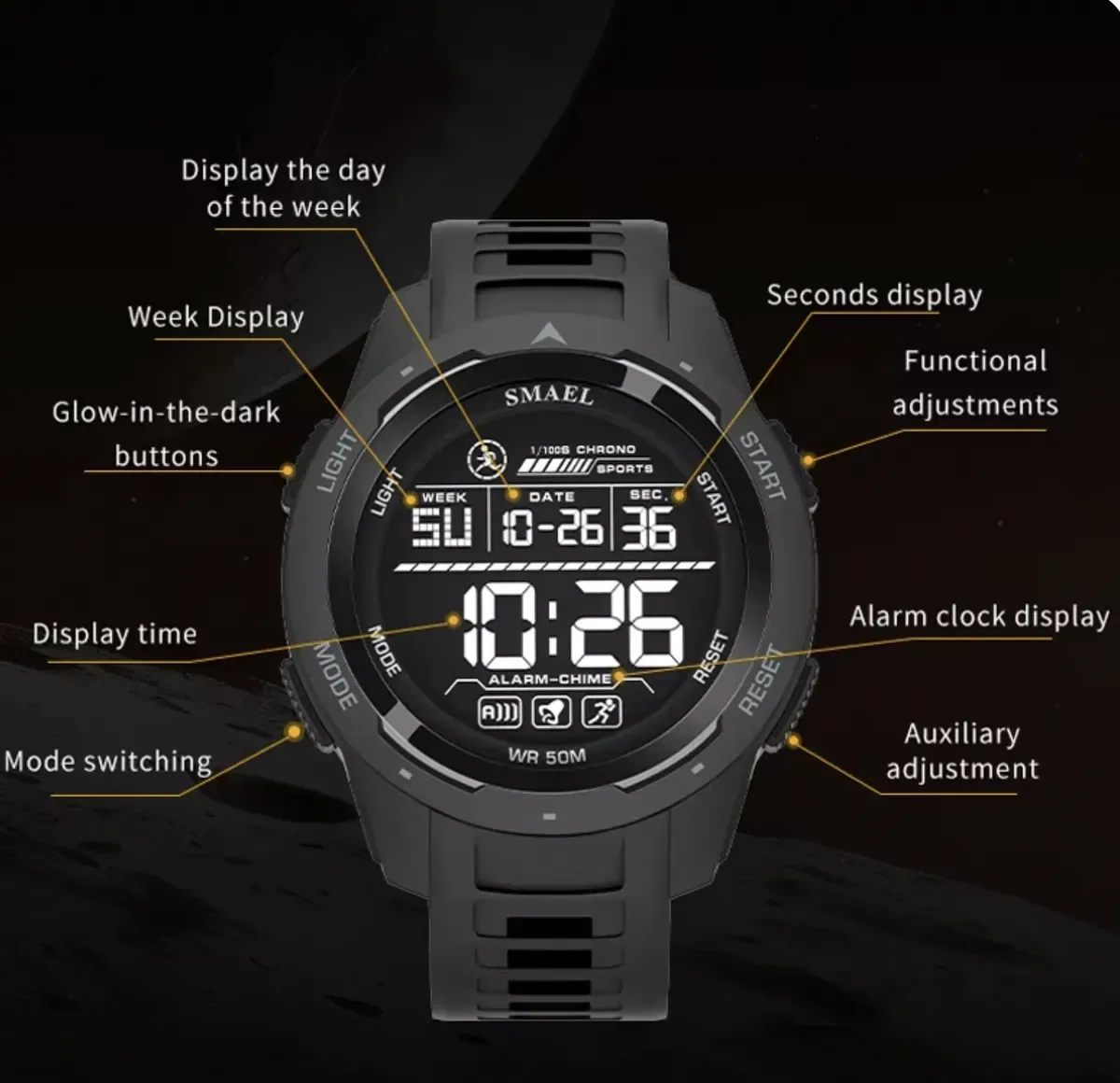Smael - це бренд спортивних та тактичних годинників високої якості. Ці годинники відрізняються стильним дизайном, надійним механізмом й високою стійкістю до води, що робить їх ідеальними для військових і любителів екстремальних активностей.