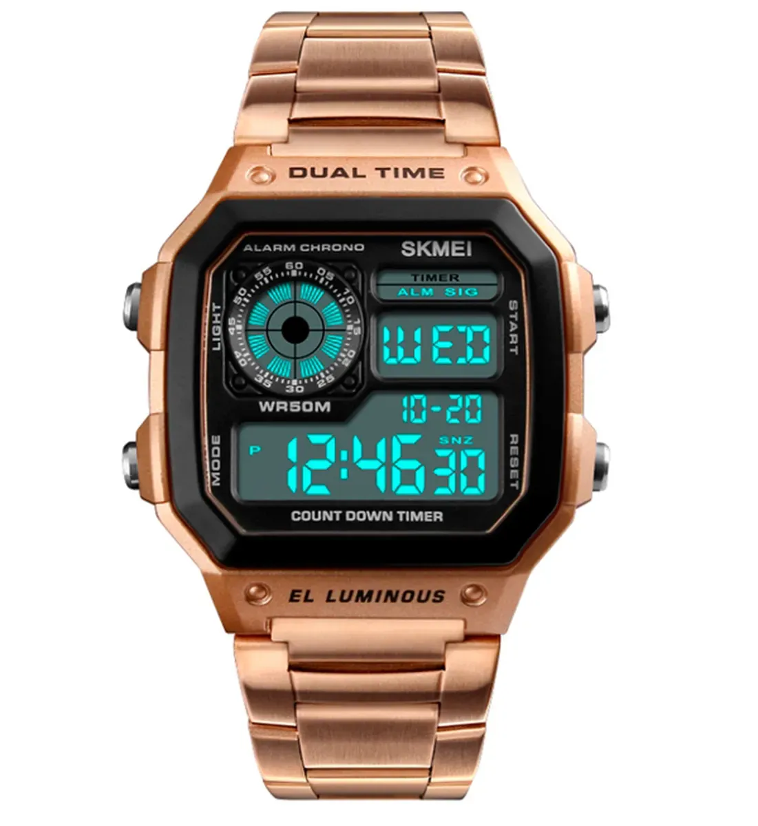 Skmei - бренд надійних годинників, які відрізняються великою кількістю корисних функцій і мають відмінну якість збірки. Головна місія бренду - годинник повинен бути настільки надійними, щоб без проблем витримувати навантаження під водою до 3 - х метрів, мати ударостійкість і служити довгі роки.