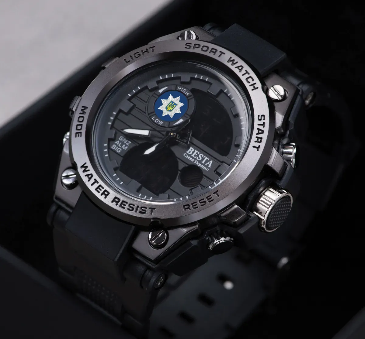 Besta Tattoo Police – версія популярної моделі Besta з логотипом поліції. Besta – це молодий український бренд якісних годинників. Годинник має витончений дизайн та якісний японський механізм. Він розроблений спеціально для поліцейських, витримує підвищені навантаження, холод до -30 та потрапляння води до 3-х метрів. Проєктування, розробка та головний офіс бренду знаходяться в Україні, збірка відбувається в Китаї, що дає змогу забезпечити найкращу ціну при високій якості.