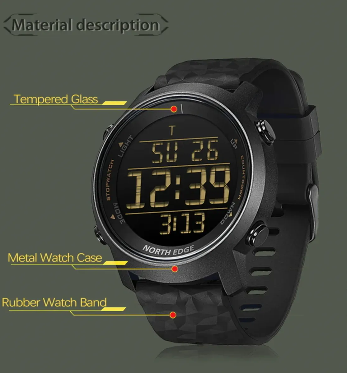 Чоловічий спортивний водостійкий тактичний годинник North Edge Aero