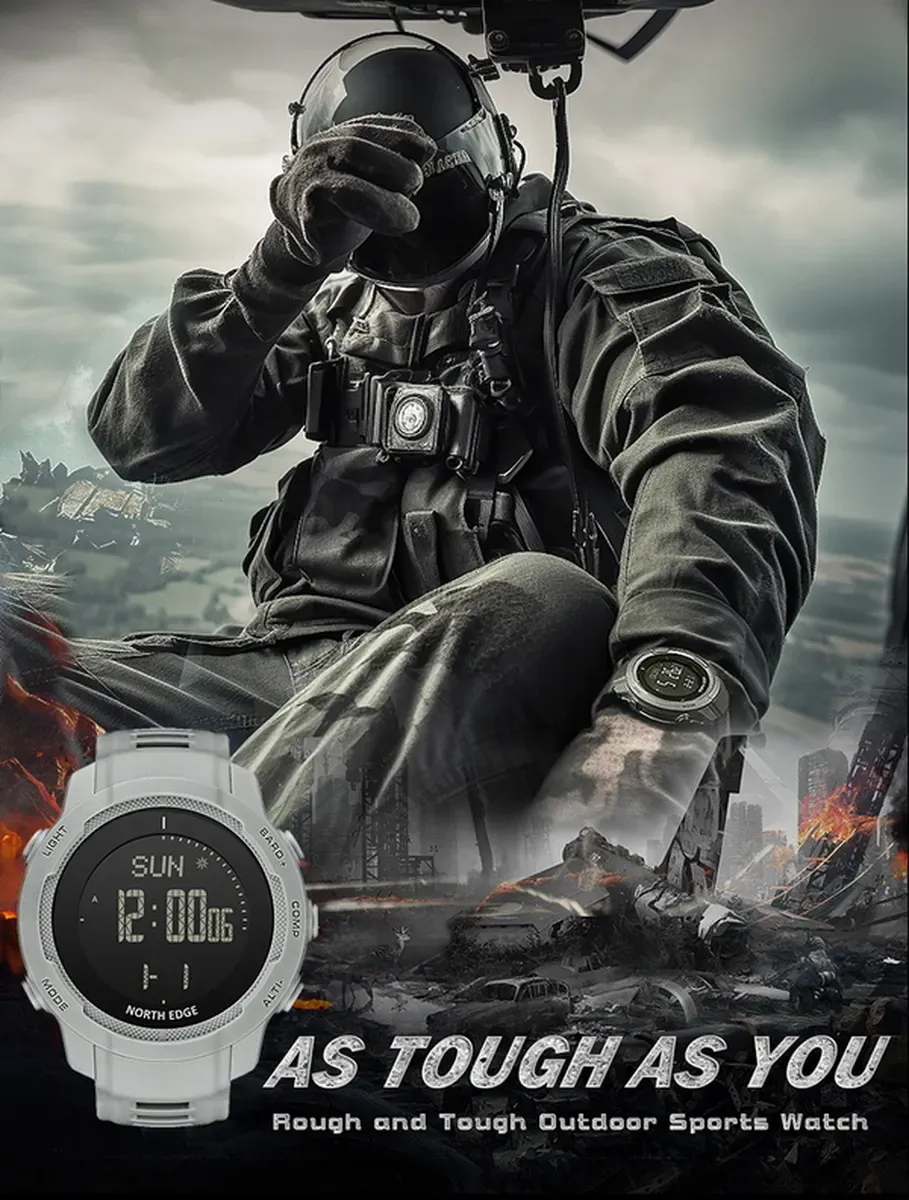 Чоловічий спортивний водостійкий тактичний з компасом годинник North Edge Vertico White з компасом