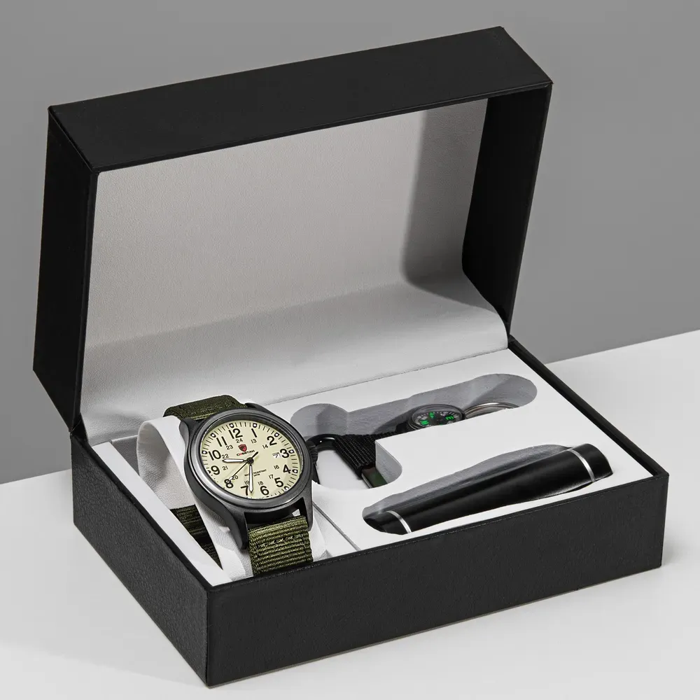Чоловічий тактичний годинник Besta Box Command Light подарунковий набір, з компасом