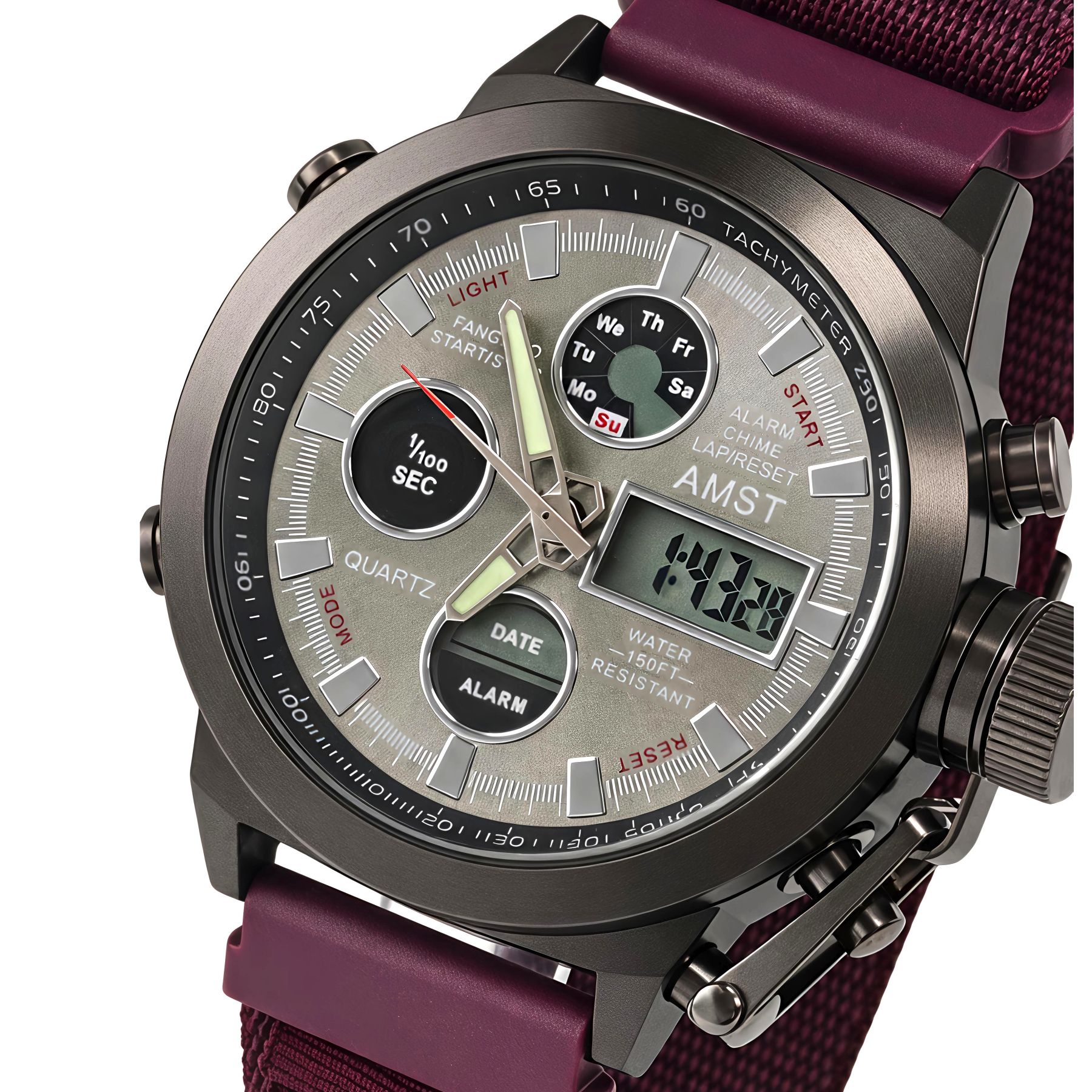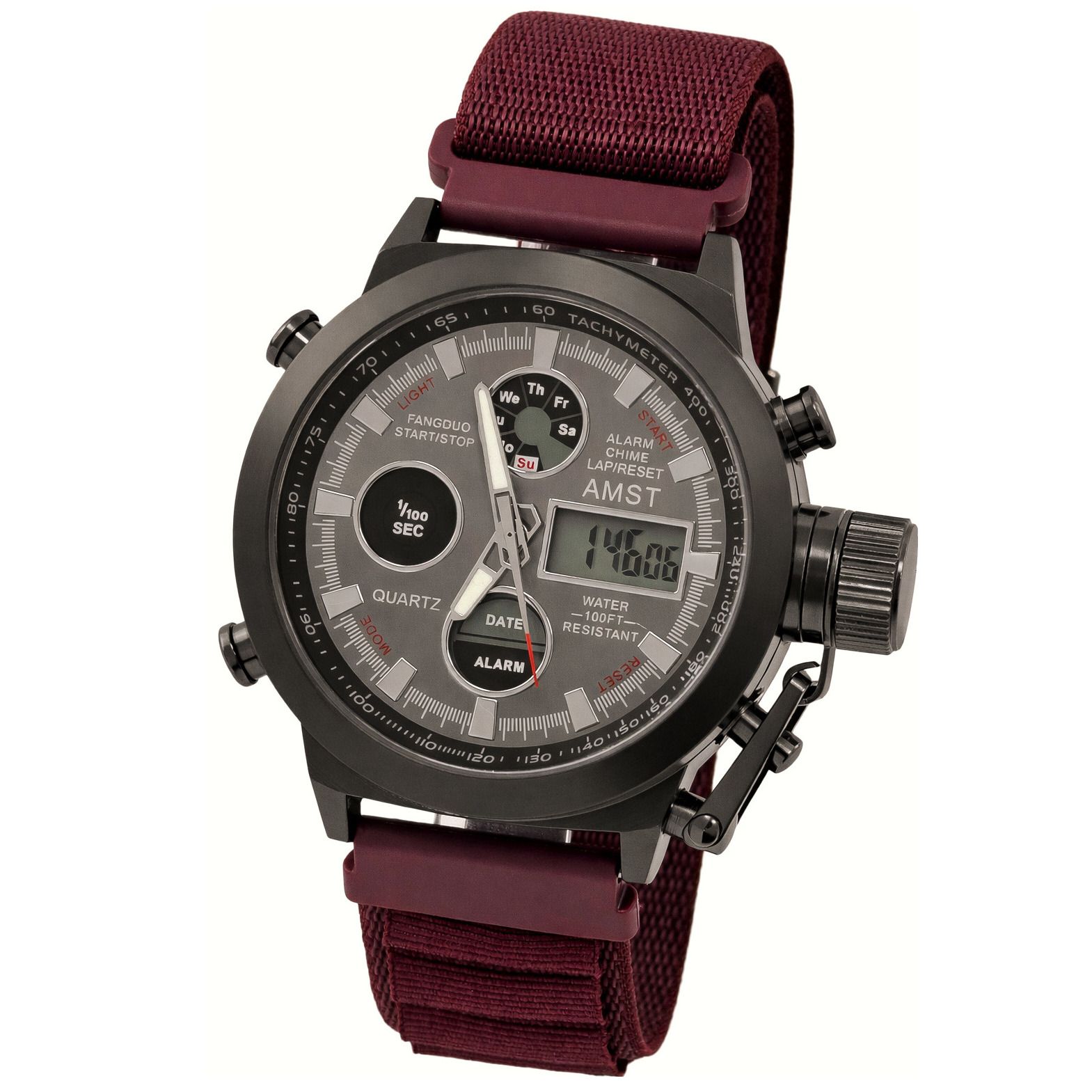 Чоловічий водостійкий спортивний тактичний годинник AMST Mountain Bordo, 2 ремінці