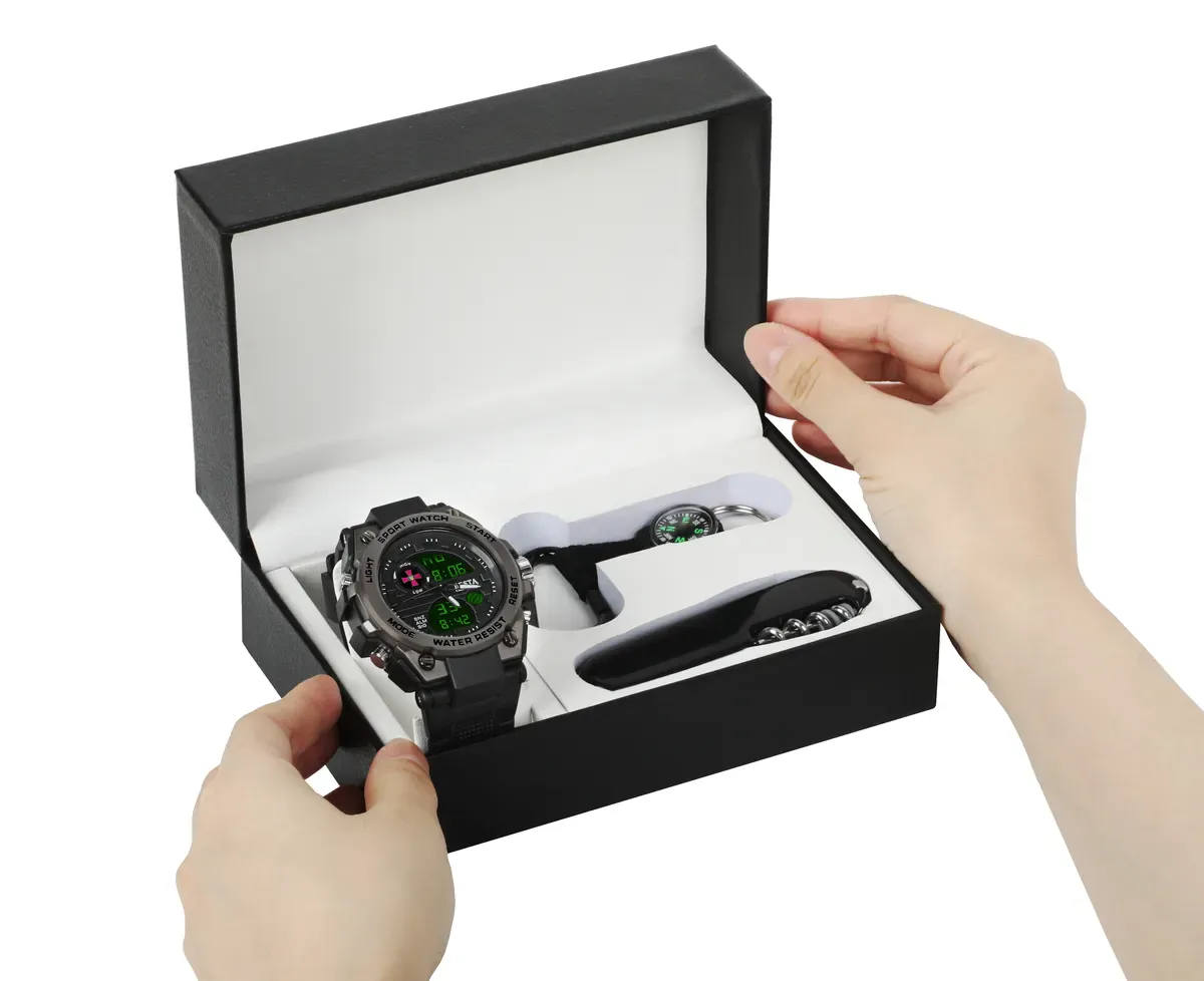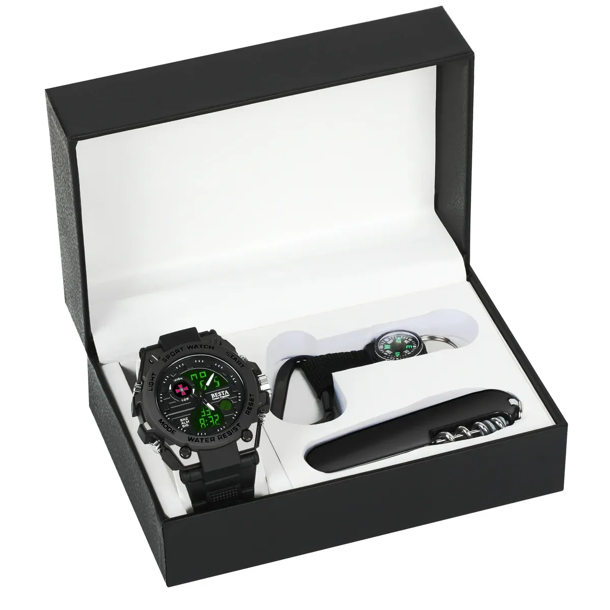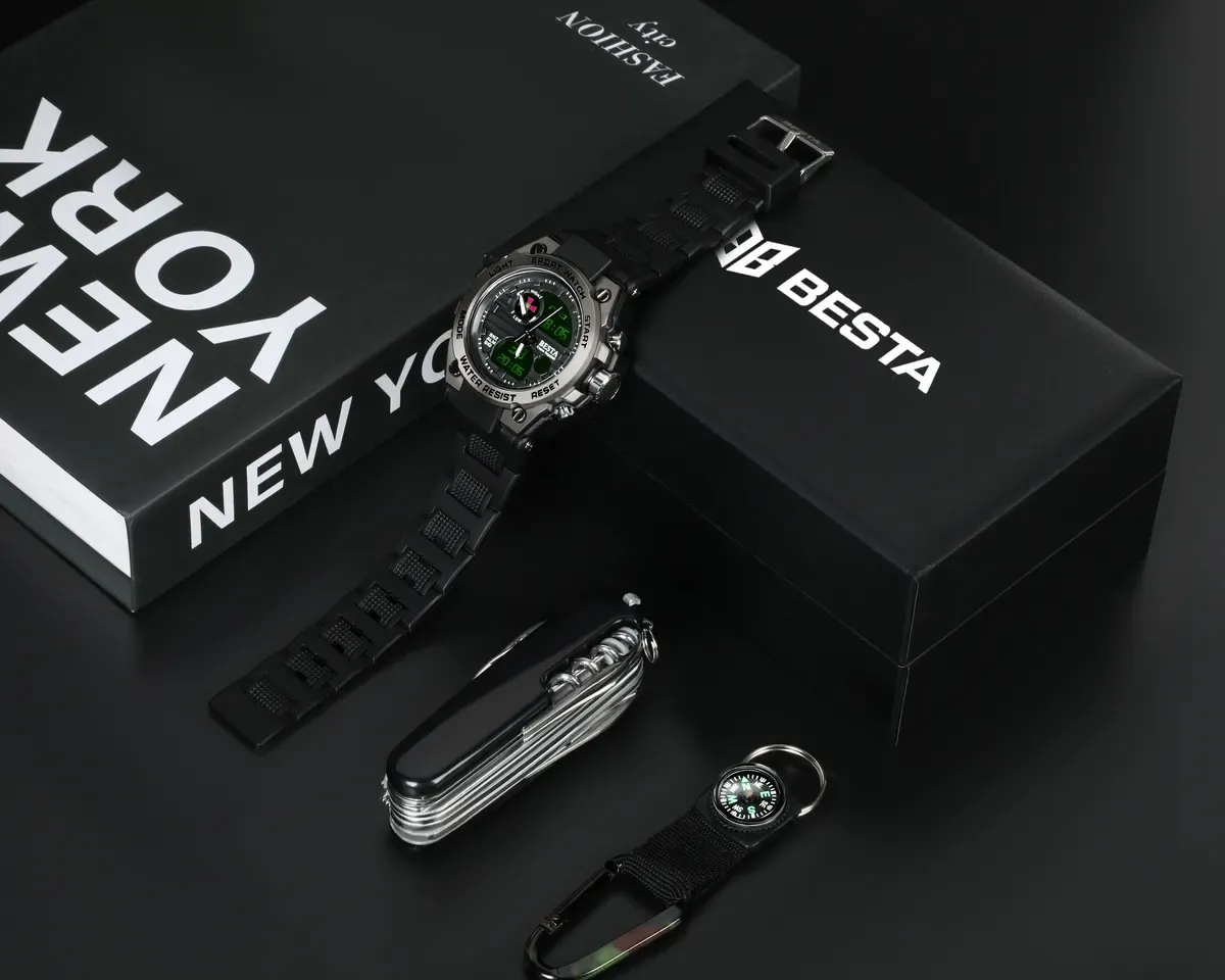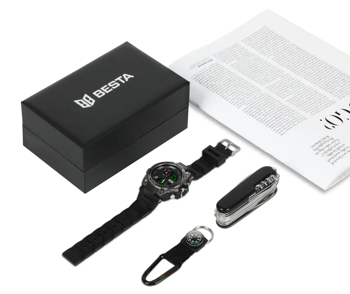 Чоловічий водостійкий спортивний тактичний годинник Besta Box Tattoo ЗСУ Set подарунковий набір, з компасом