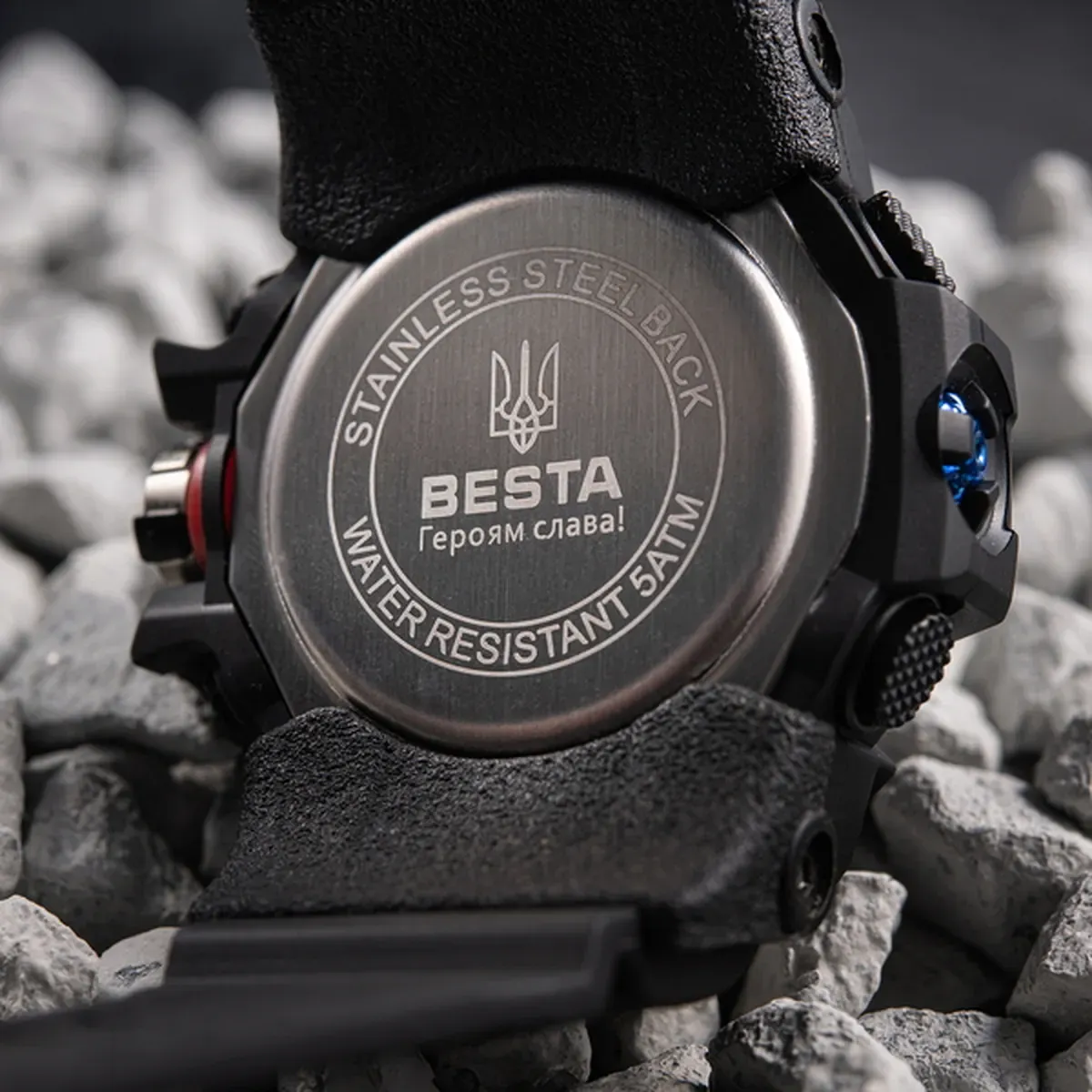 Besta – це молодий український бренд якісних годинників. Годинник має витончений дизайн, якісний японський механізм та стальний корпус. Він розроблений спеціально для військових, витримує підвищені навантаження, холод до -30 та потрапляння води до 3-х метрів. Проєктування, розробка та головний офіс бренду знаходяться в Україні, збірка відбувається в Китаї, що дає змогу забезпечити найкращу ціну при високій якості. В комплекті іде офіційна гарантія на 12 місяців.