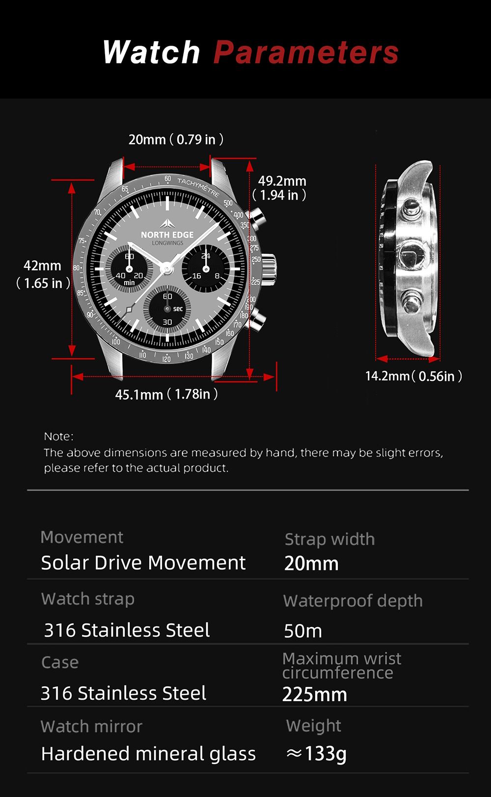 North Edge Long Wings - це найновіша розробка бренду North Edge призначена для пілотів. Модель виконана зі сталі 316 проби, має закаляне протиударне скло та оснащена сонячною батареєю в додаток до основного японського механізму. Завдяки новітній системі Solar Power годинник може працювати автономно від енергії сонця навіть з основною батарейкою, яка сіла довгий час. Разом з неперевершеним дизайном ця модель ідеально підійде для важких умов і поціновувачів якісних речей.