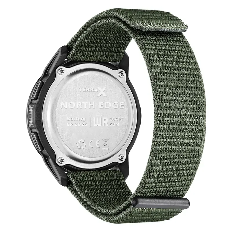 North Edge Terrax - бюджетна версія легендарної серії годинників ALPS. Годинник має дуже схожий дизайн, проте не комплектується компасом та має корпус із полікарбонату, замість матеріалу Fibre+. Завдяки цьому дана модель має більш приємну ціну при незмінно високій якості бренду North Edge.