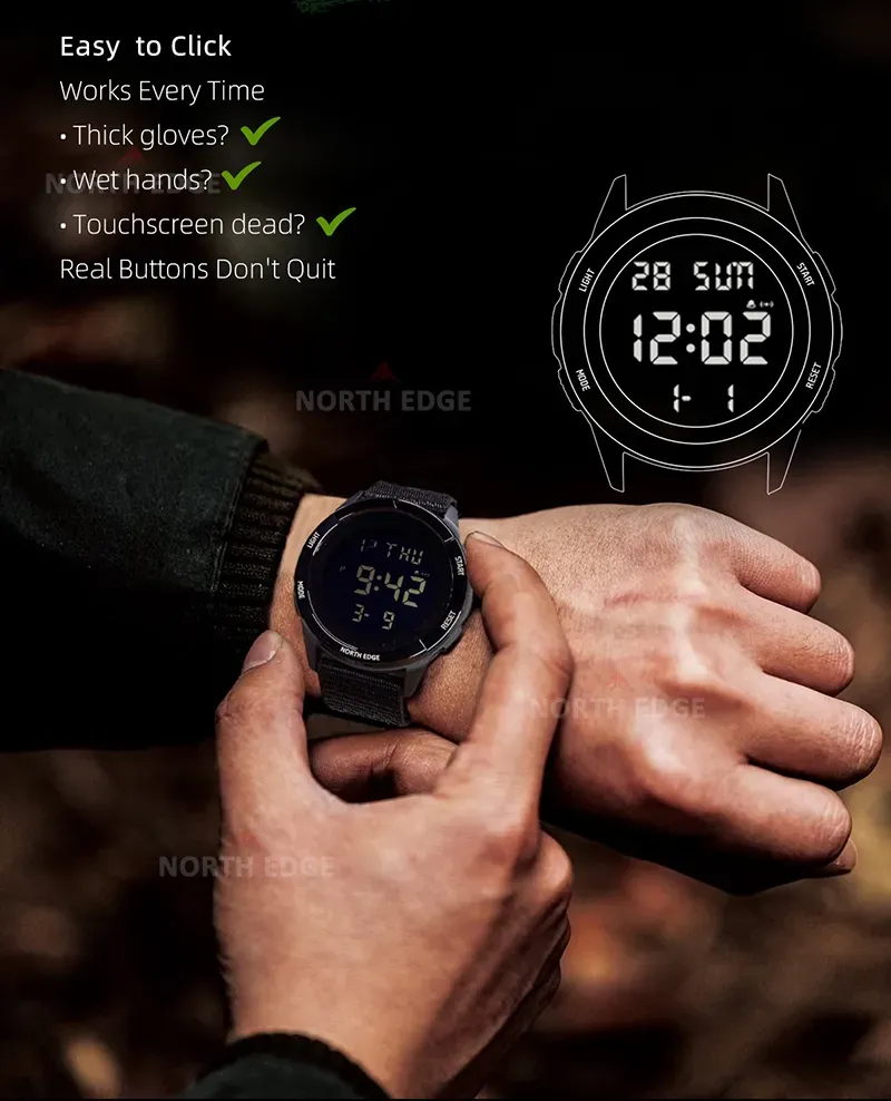 North Edge - бренд тактичних годинників для пілотів й моряків. Годинники призначені для використання в екстремальних умовах. Вони витримують 5 метрів під водою, ультрахолодні температури та мають все необхідне для будь-якої життєвої ситуації. Бренд North Edge широко цінується й використовується моряками та пілотами по всьому світу і має репутацію наднадійних і якісних годинників. В Україні представлений вперше, ексклюзивно в нашому магазині.