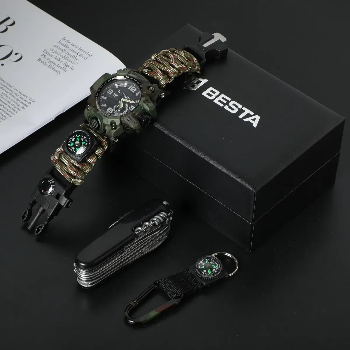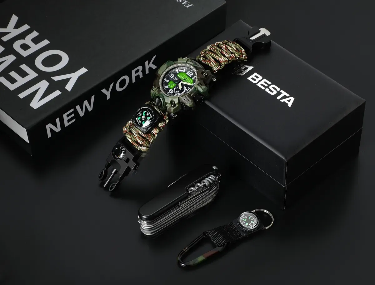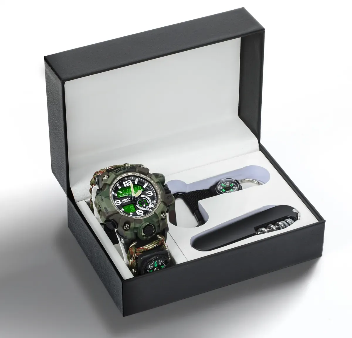 Чоловічий водостійкий спортивний тактичний з компасом годинник Besta Box Military Set подарунковий набір, з компасом