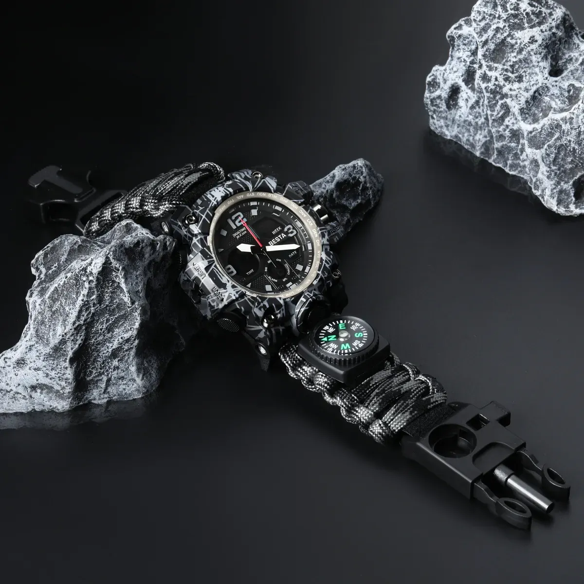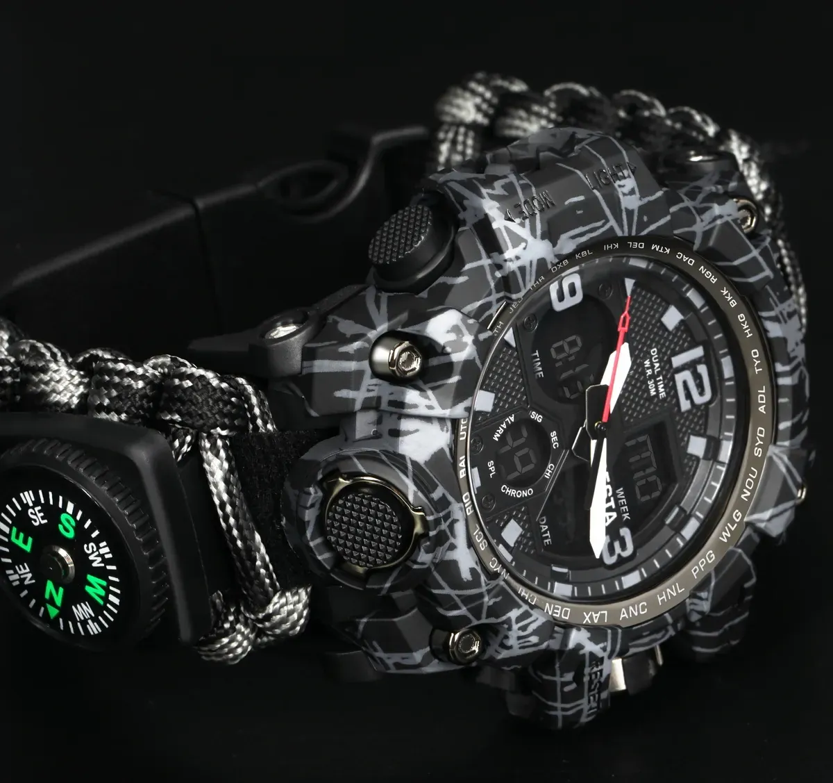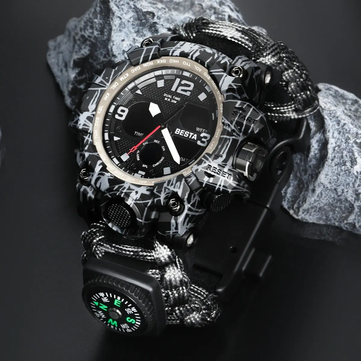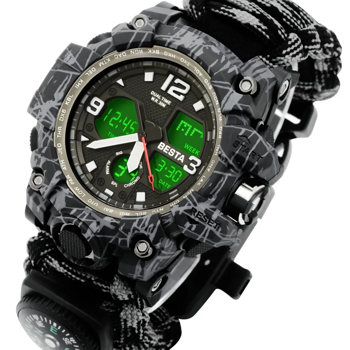 Чоловічий водостійкий спортивний тактичний з компасом годинник Besta Life Pro Grey з компасом