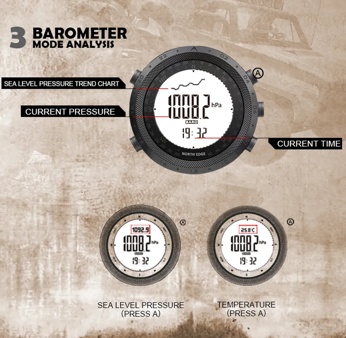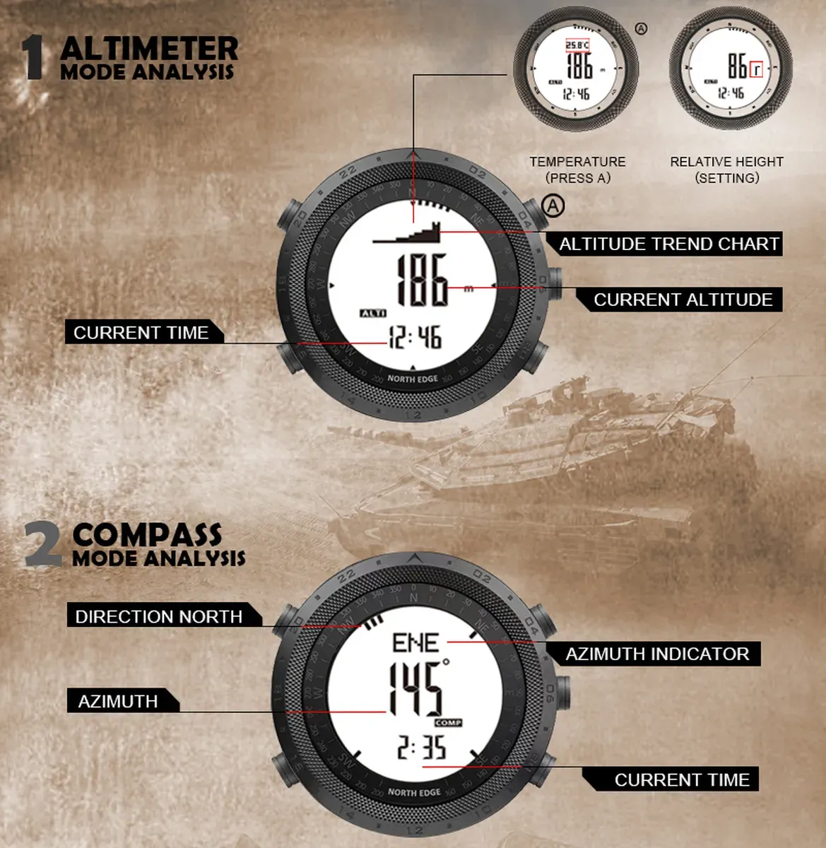 Годинники від бренду North Edge можуть витримувати ультрахолодні температури, а також мають в собі важливі функції, такі як компас, барометр, альтиметр, термометр, крокомір, секундомір, будильник, таймер, підсвічування та інші. Бренд North Edge має репутацію надійних і якісних годинників.