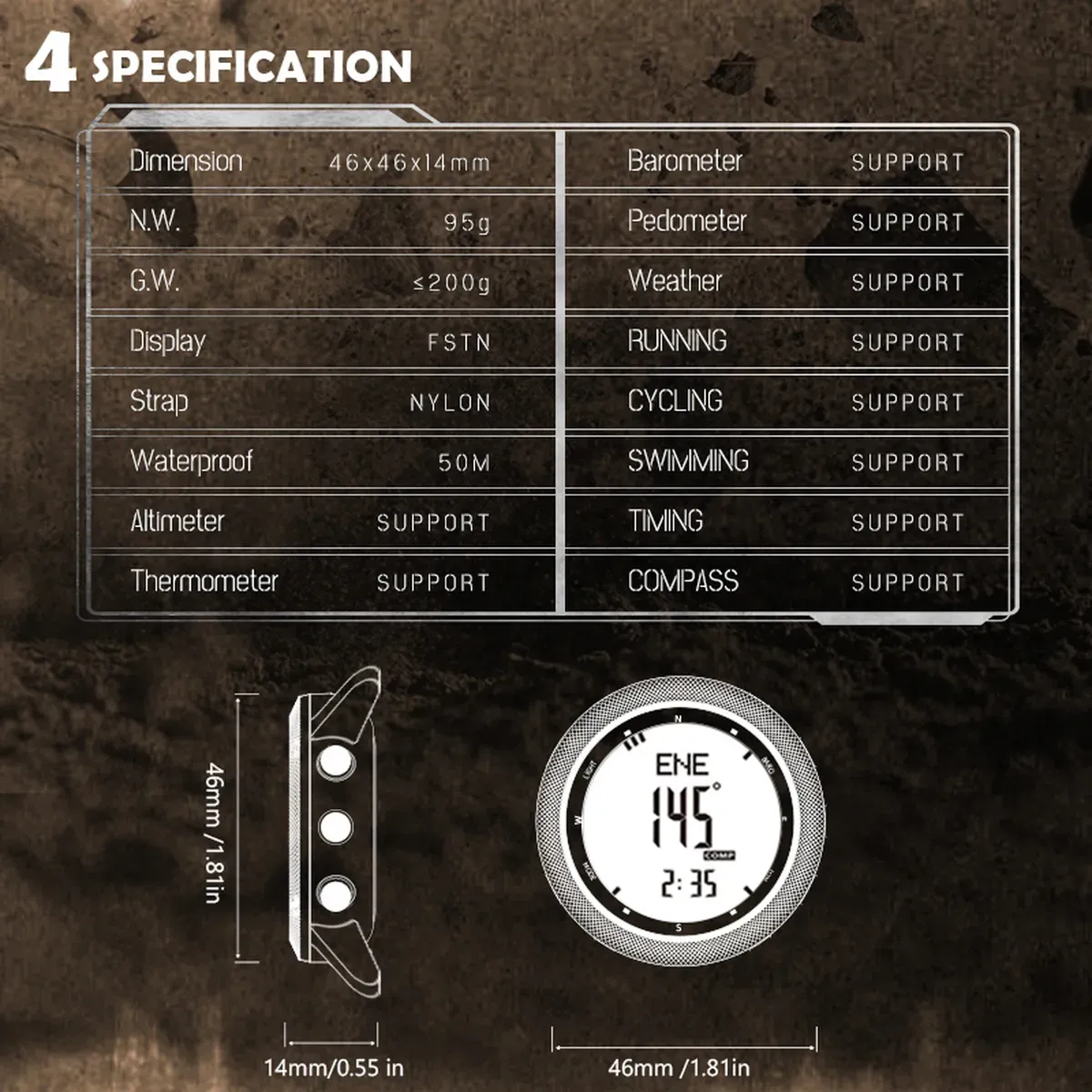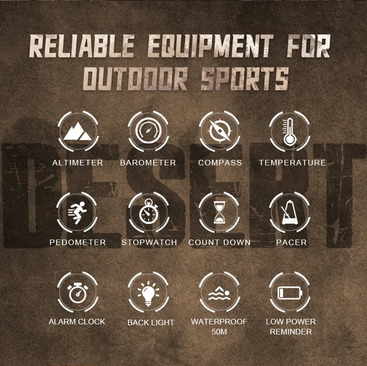Чоловічий водостійкий спортивний тактичний з компасом годинник North Edge Desert 5BAR з компасом