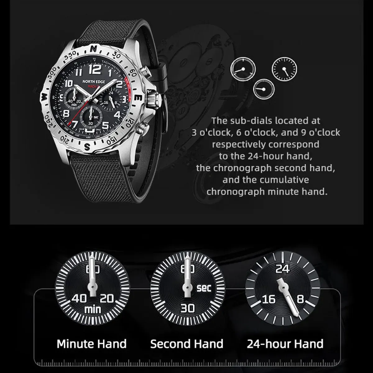 North Edge - це бренд тактичних годинників, які спеціально розроблені для військових, пілотів, моряків і т.д., які працюють в надскладних умовах. Ці годинники призначені для використання в екстремальних ситуаціях, де точність, надійність та функціональність є критичними.