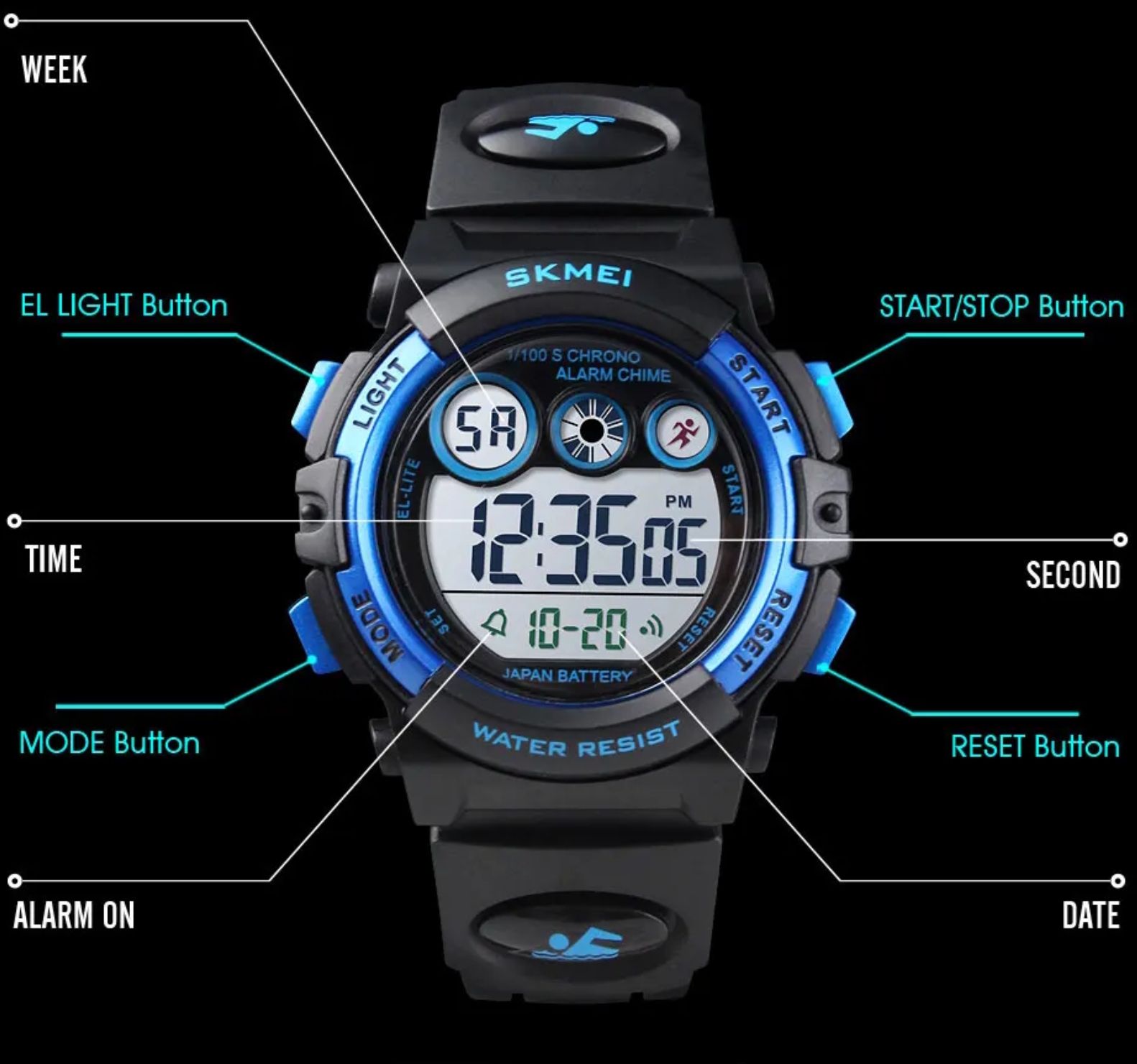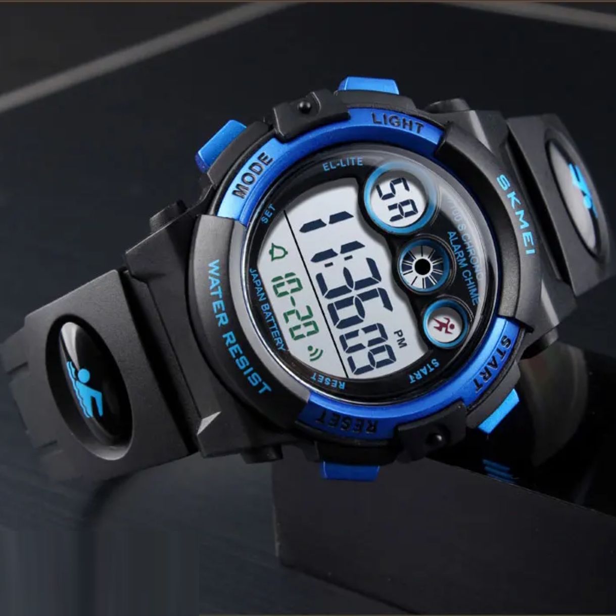Skmei Kids DarkBlue - модель розроблена для хлопців у віці від 7 до 16 років. Вони водостійкі, протиударні та чудово підійдуть для занять спортом, плавання в басейні та активного життя хлопців. Підсвітка, будильник та секундомір стануть у нагоді в будь-який час доби.