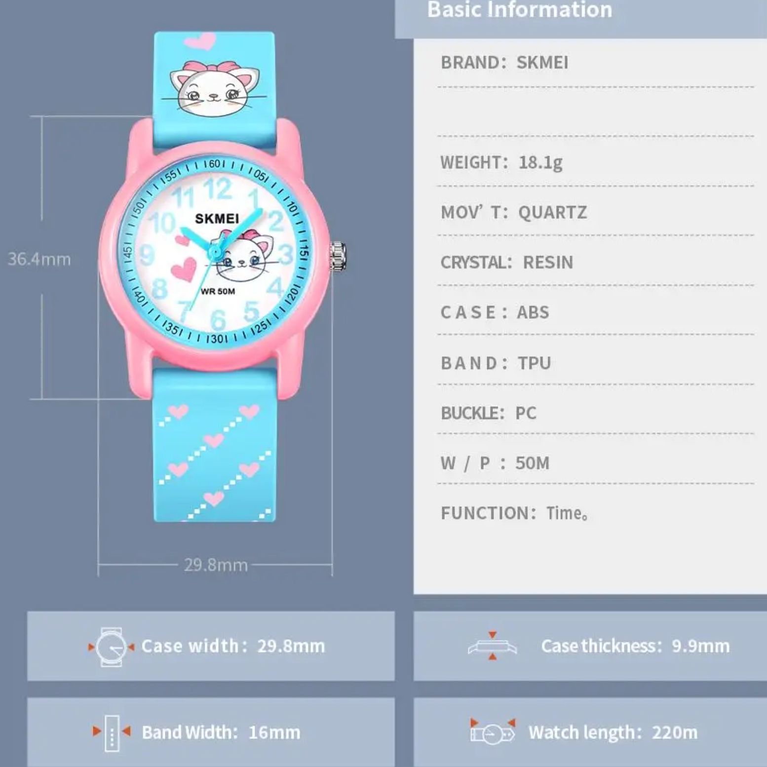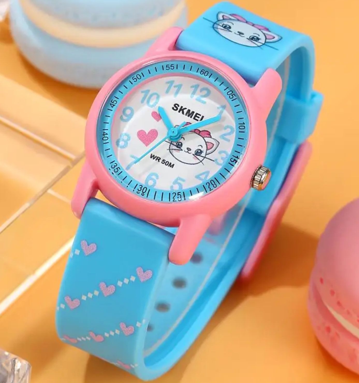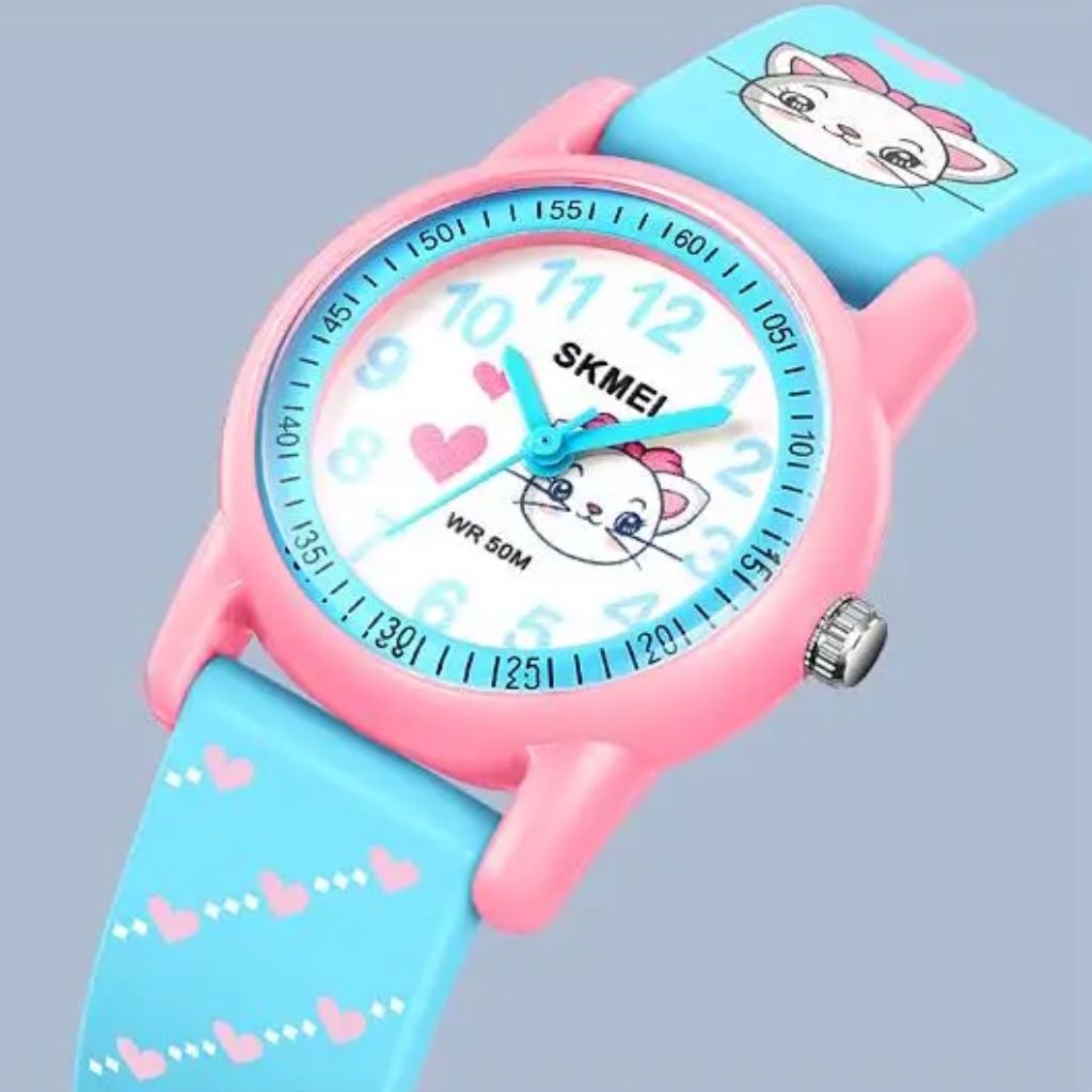 Skmei Kitty - модель розроблена для дівчат від 4-х років до 10 років. Завдяки невеликому розміру та яскравому дизайну, вона буде чудовим подарунком дівчатам, а також дасть змогу дитині вивчати як орієнтуватися в часі та розвиватися.