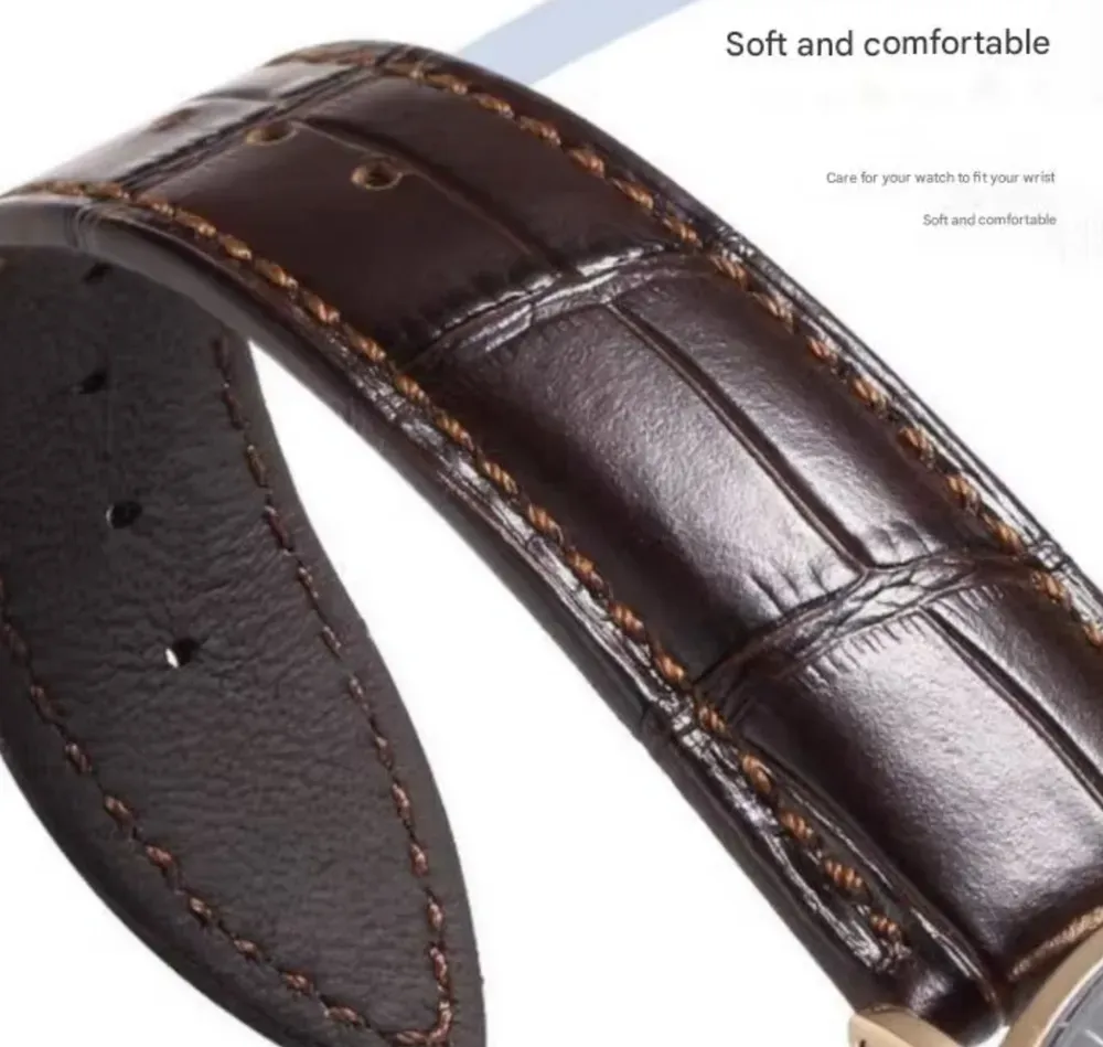 Це преміальний ремінець зі шкіри вищої проби на кліпсовій застібці. Ремінець не боїться води (незначне потрапляння), виконаний з високоякісної приємної для руки шкіри та підійде на будь-який годинник 22 розміру.
