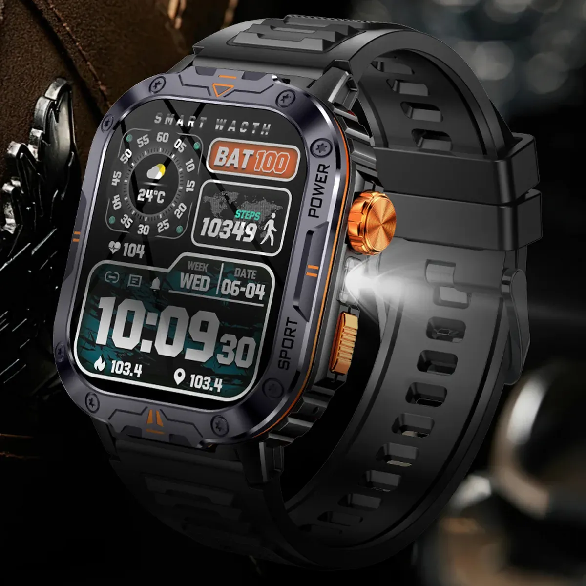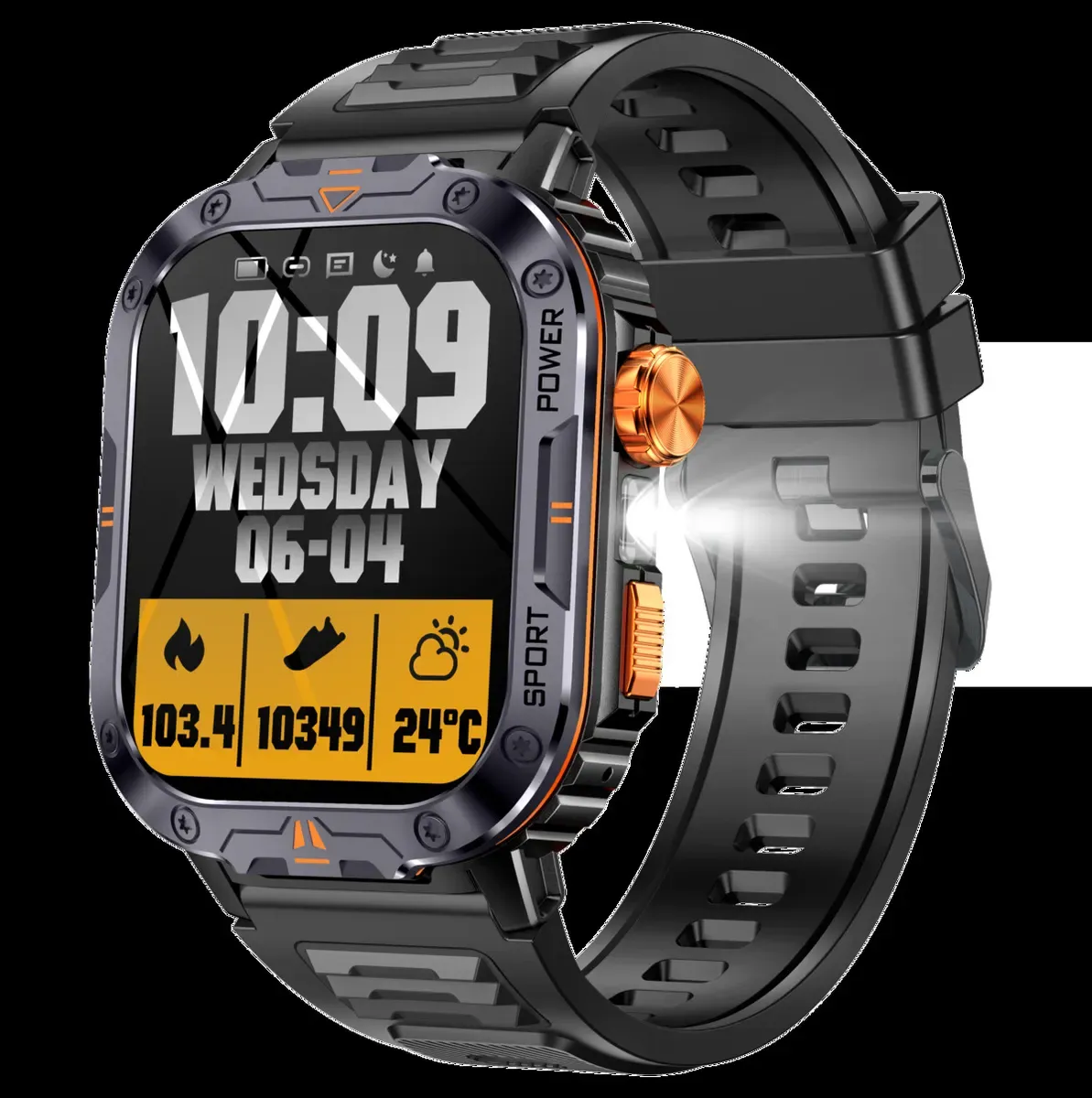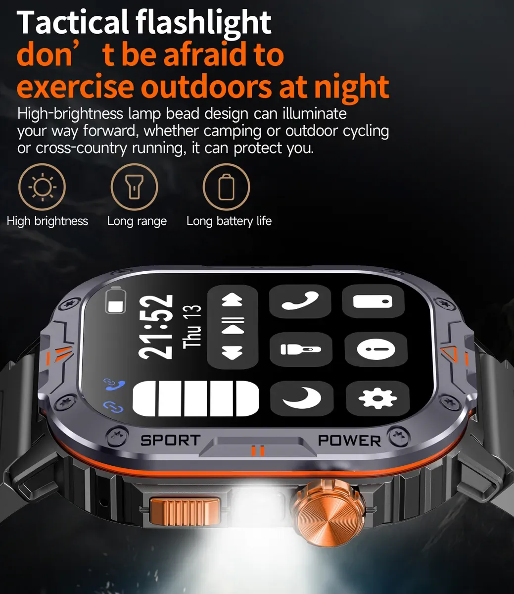 Особливості:Вимірювання пульсу/кисню у крові; Моніторинг стресу; Оцінка та аналіз сну; Більше 163 спортивних режимів; Аналіз даних спорту; Тактичний ліхтарик; Будильник, Секундомір; Відображення погоди; Управління програвачем телефону; 100+ циферблатів на вибір та можливість поставити фото з телефону; Вхідні телефонні дзвінки та оповіщення