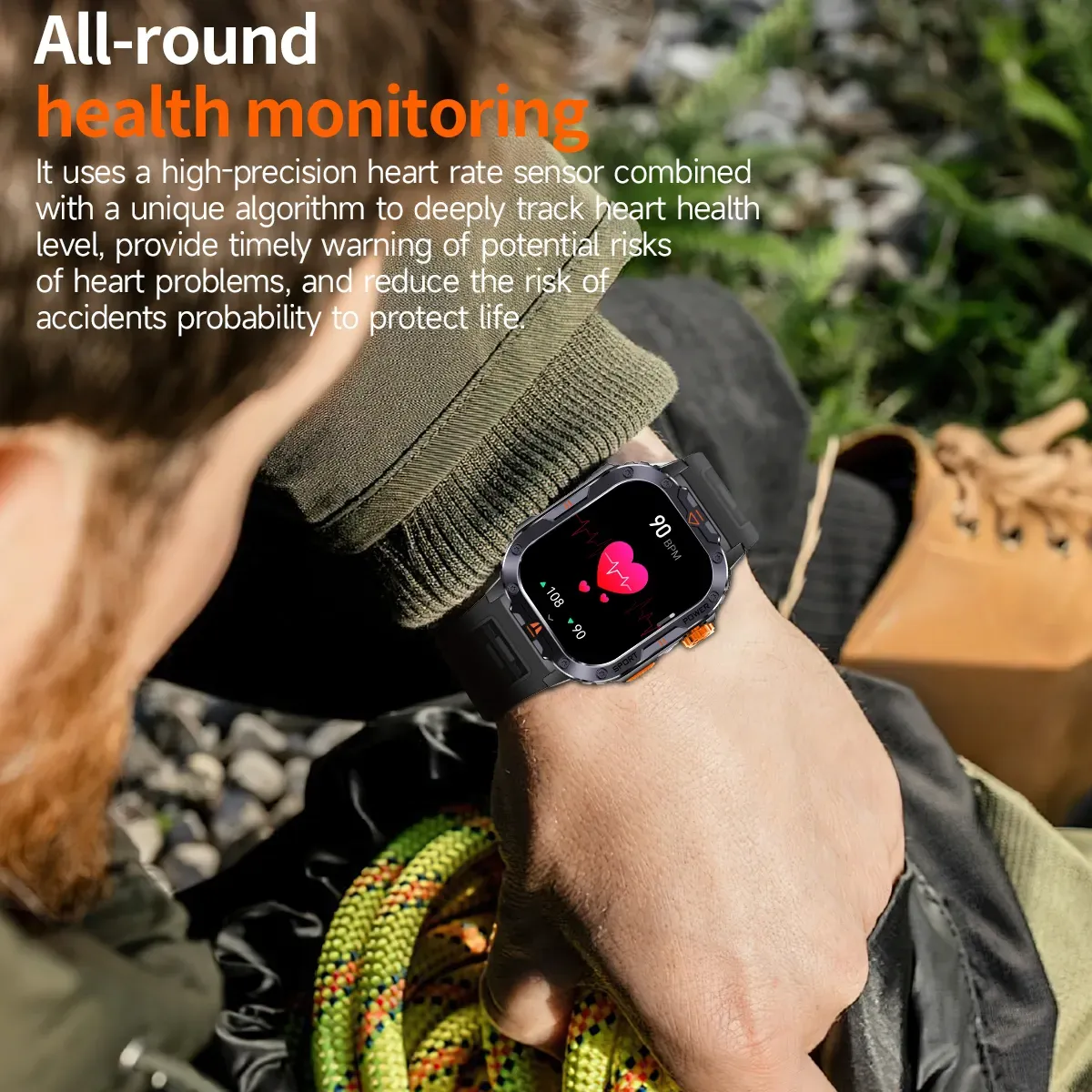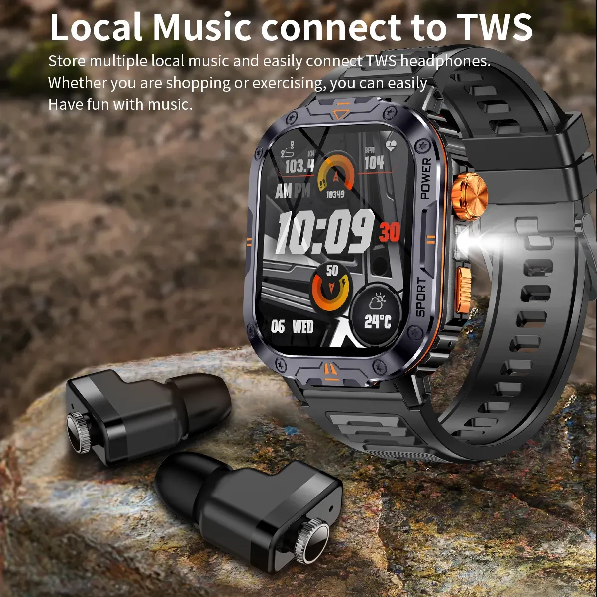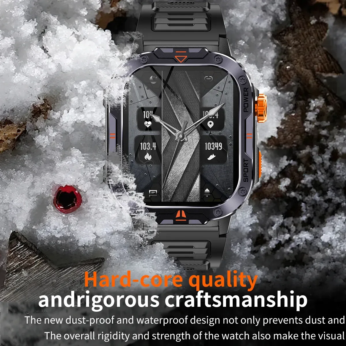 Особливості:Вимірювання пульсу/кисню у крові; Моніторинг стресу; Оцінка та аналіз сну; Більше 163 спортивних режимів; Аналіз даних спорту; Тактичний ліхтарик; Будильник, Секундомір; Відображення погоди; Управління програвачем телефону; 100+ циферблатів на вибір та можливість поставити фото з телефону; Вхідні телефонні дзвінки та оповіщення