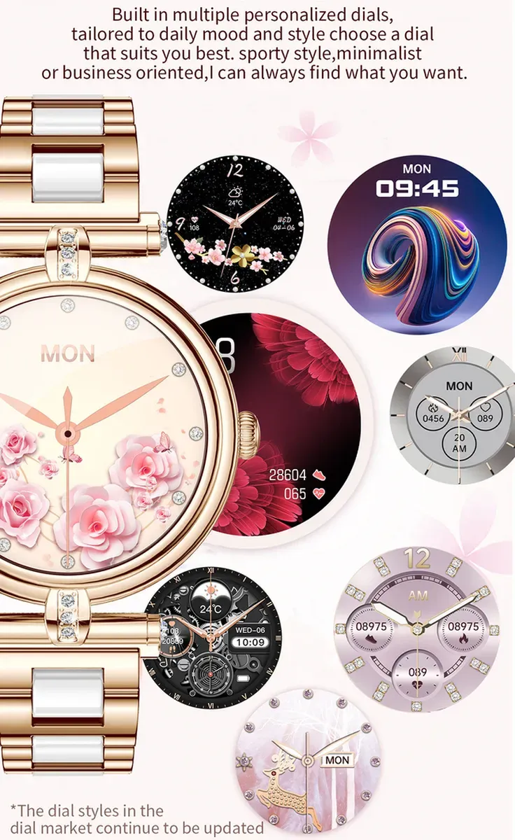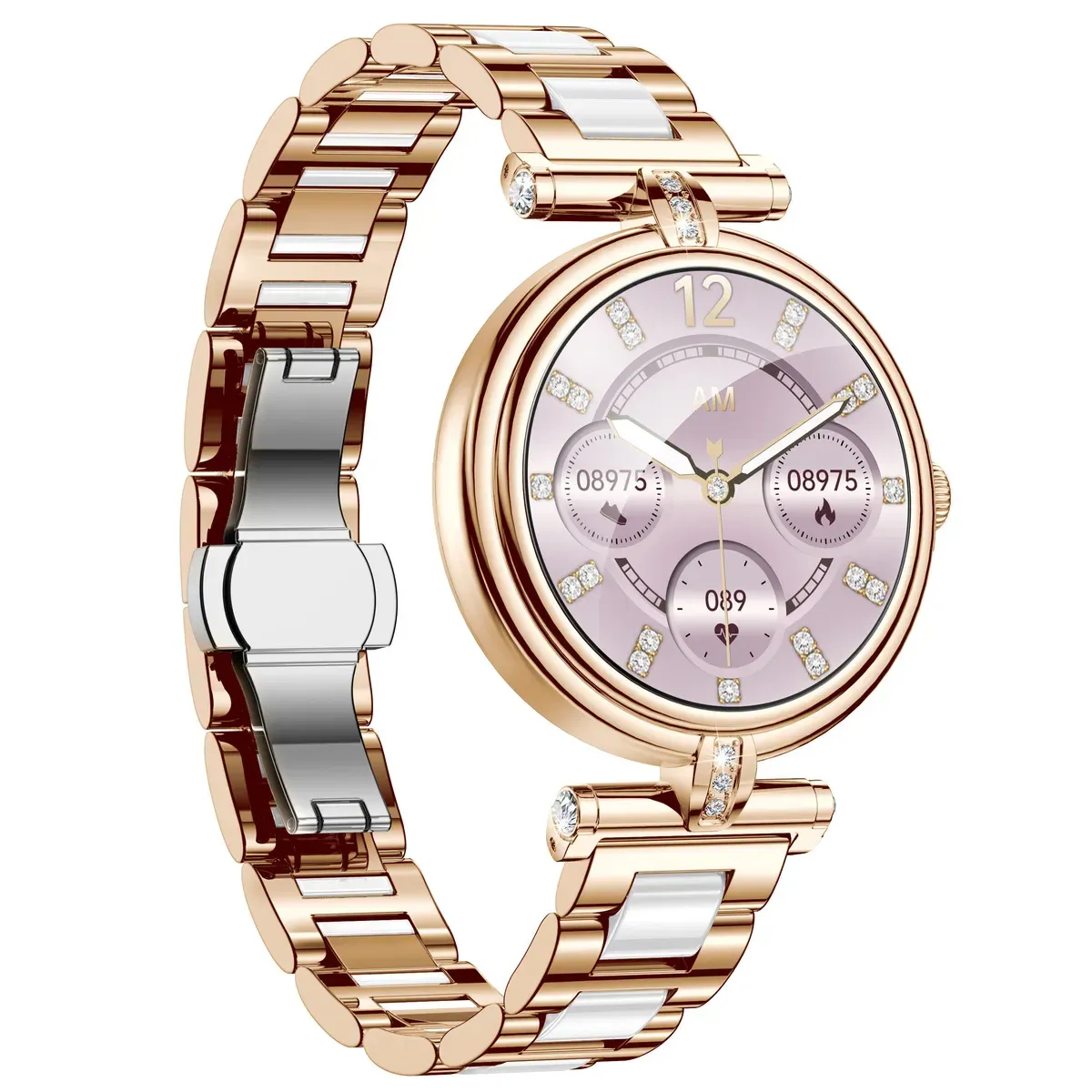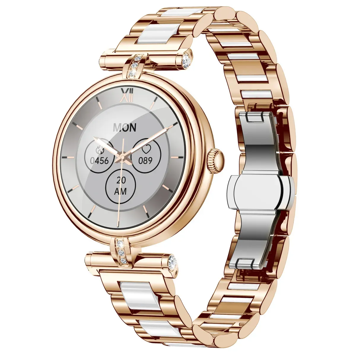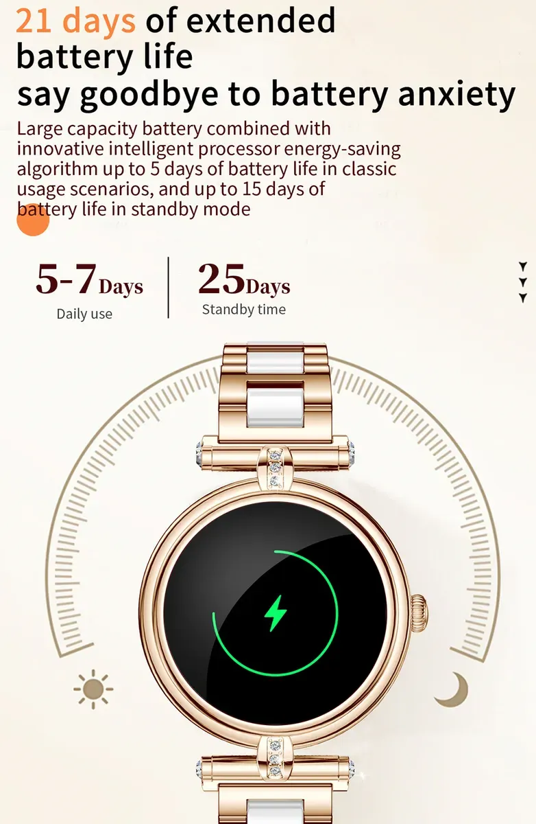 Smart Leila - елегантний смарт-годинник для жінок. Він поєднує стильний дизайн із розумними функціями, які допомагають стежити за здоров'ям і залишатися на зв'язку. Годинник має яскравий дисплей, зручний інтерфейс, понад 100 спортивних режимів, дозволяє отримувати сповіщення, керувати музичним плеєром та персоналізувати заставки. Це ідеальний аксесуар для тих, хто цінує поєднання моди та технологій.