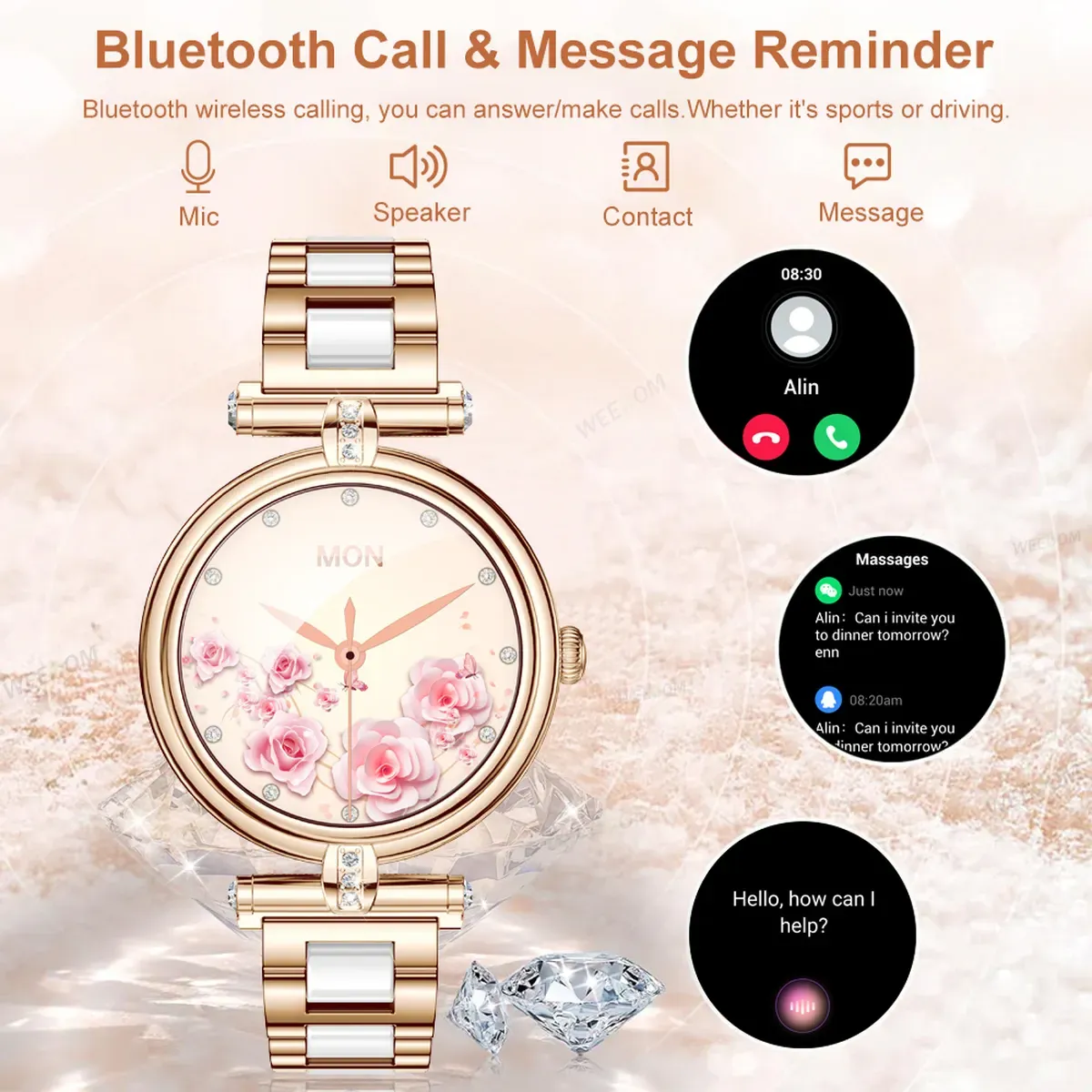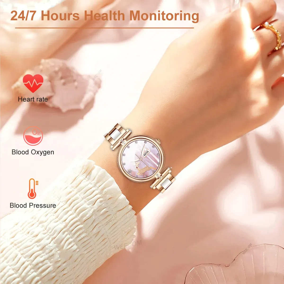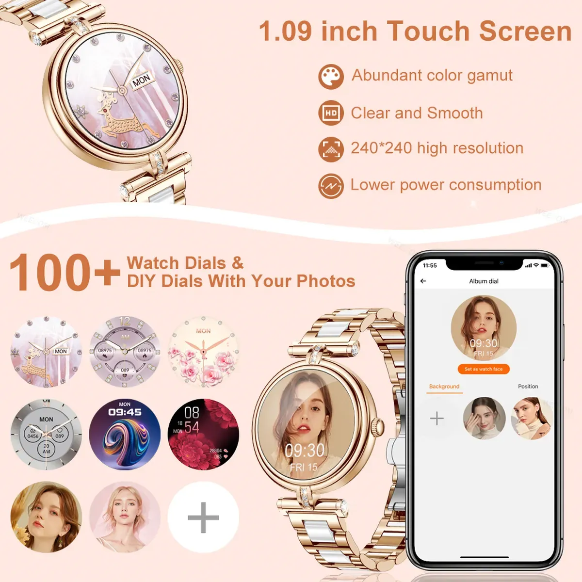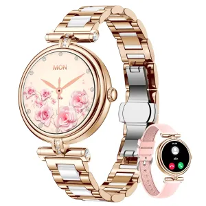 Smart Leila - елегантний смарт-годинник для жінок. Він поєднує стильний дизайн із розумними функціями, які допомагають стежити за здоров'ям і залишатися на зв'язку. Годинник має яскравий дисплей, зручний інтерфейс, понад 100 спортивних режимів, дозволяє отримувати сповіщення, керувати музичним плеєром та персоналізувати заставки. Це ідеальний аксесуар для тих, хто цінує поєднання моди та технологій.