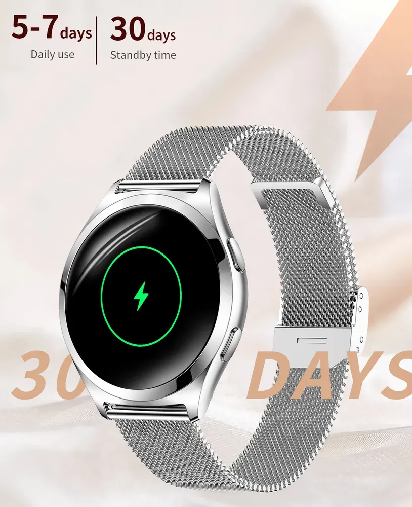 Функції:Вимірювання пульсу/тиску/кисню в крові; Безліч спортивних режимів та тренувань; Крокомір, лічильник калорій; Будильник, моніторинг сну; Голосовий помічник; Здійснення дзвінків, надходження повідомлення; Жіночі цикли; Керування програвачем телефону; Понад 100 заставок дисплея та можливість поставити фото з телефону.