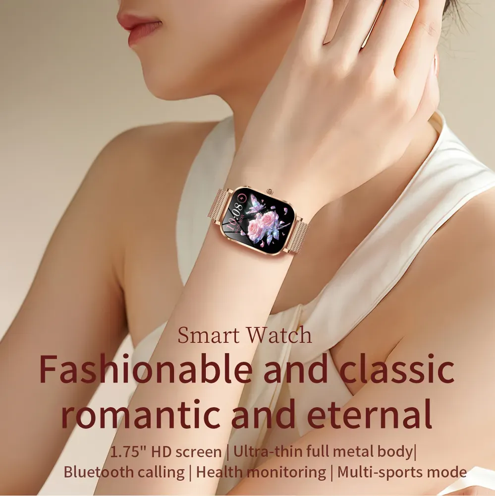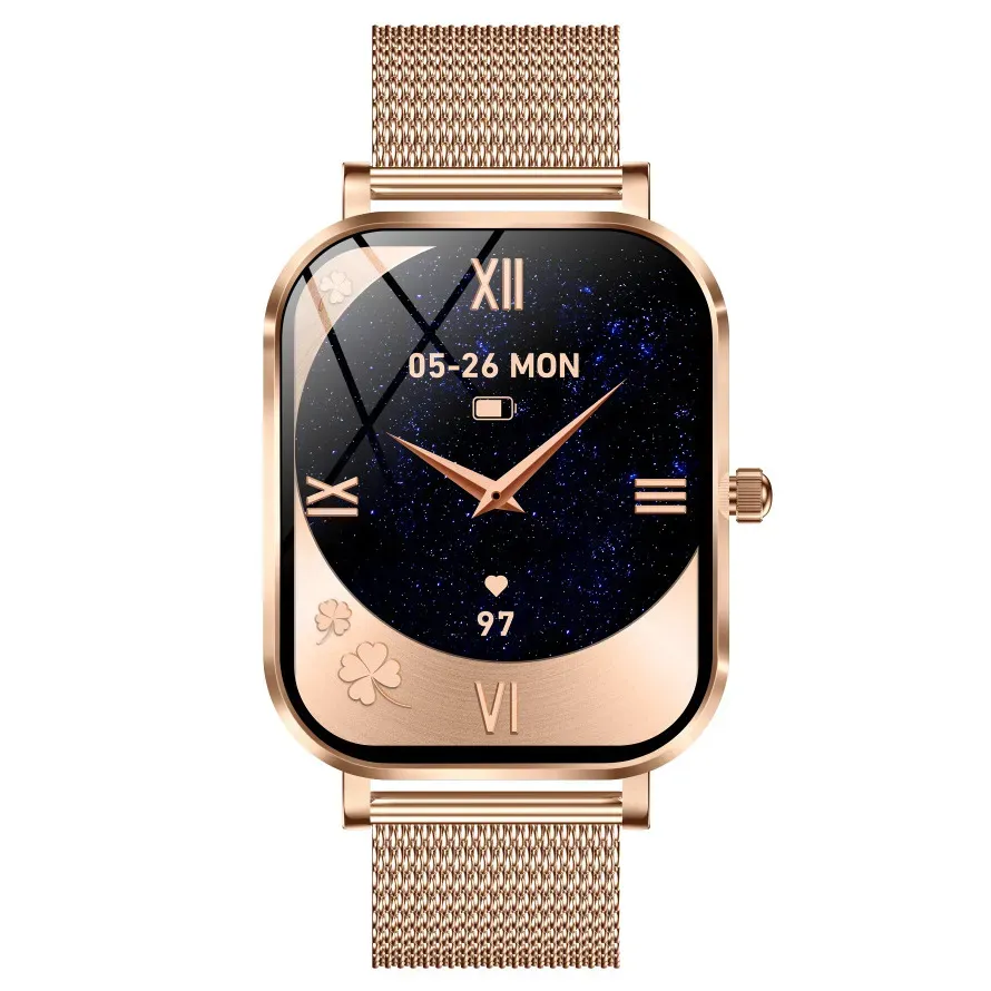 Smart Miami - новітній жіночий годинник від UWatch з елегантним дизайном. Новинка оснащена процесором нового покоління та великим дисплеєм. Smart Miami має неперевершений дизайн та чудово доповнить Ваш образ. Функції включають вимірювання пульсу, рівня кисню в крові, жіночий календар, моніторинг сну, безліч спортивних тренувань, керування музикою, Bluetooth-дзвінки.