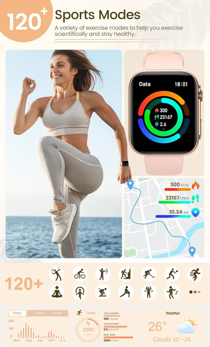 Функції:Крокомір. повідомлення про вхідний дзвінок. повідомлення про надходження повідомлення. дистанційна статистика. лічильник калорій. моніторинг сну. будильник. віддалене управління камерою. антилост. режими спорту і гімнастики